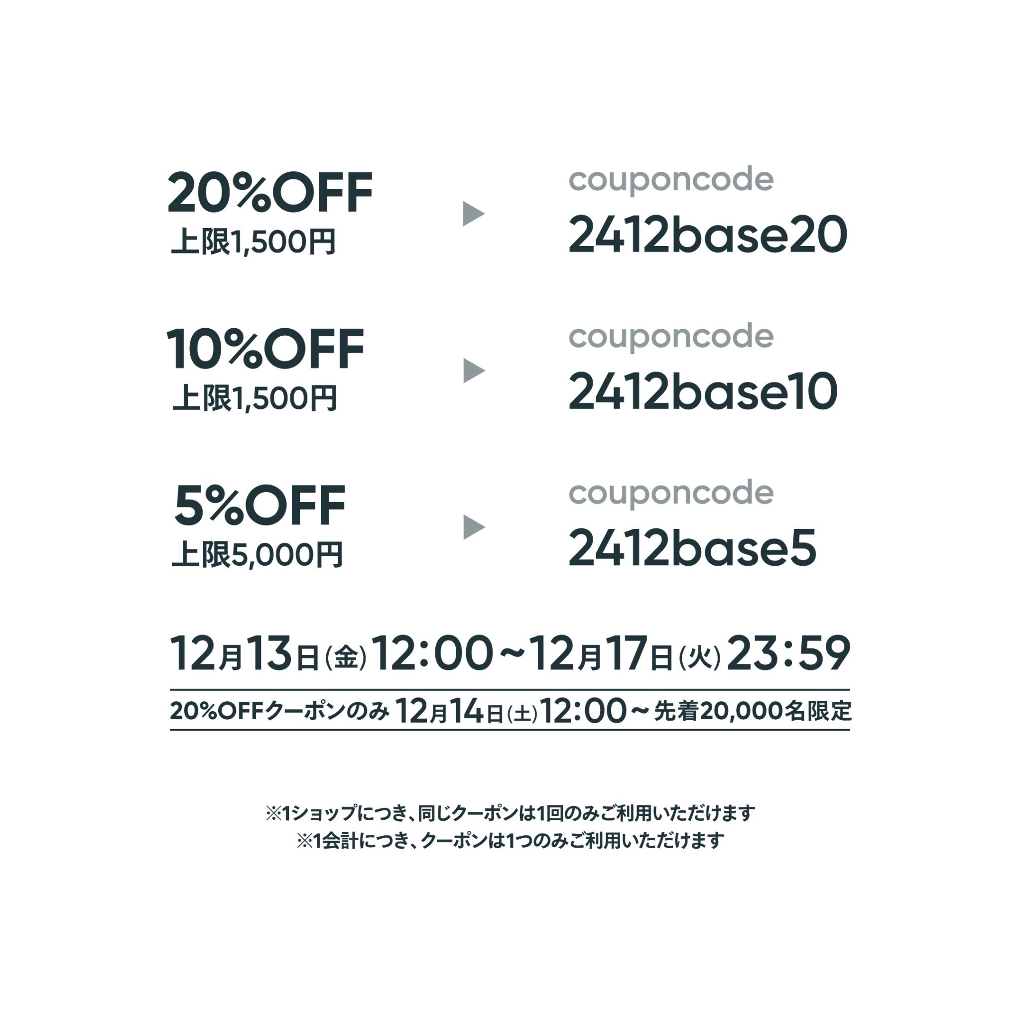 【12/13~17】最大20%OFF!12周年BASE感謝祭のご案内