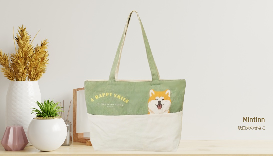 秋田犬のきなこ柄トートバッグが登場!普段使いに最適なA4横型サイズ。