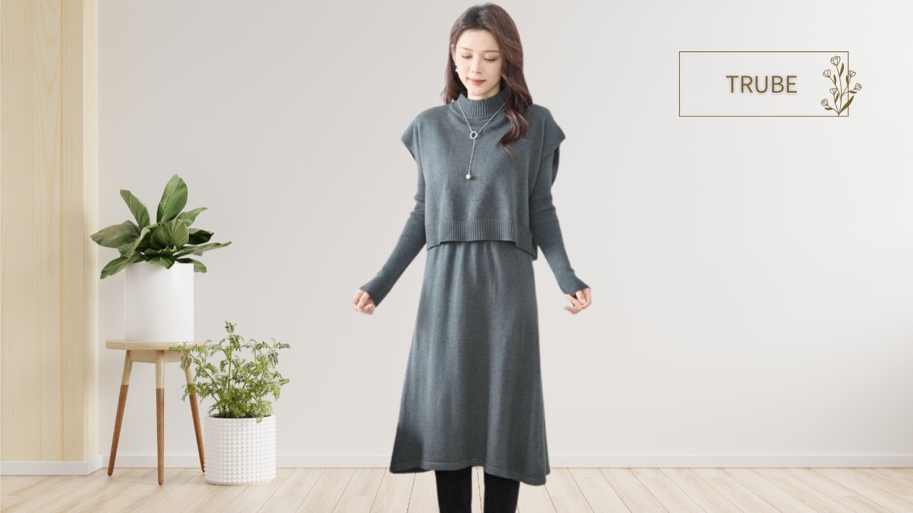 上品さと着回し力を兼ね備えた、ニットベストとワンピースの2点セット。