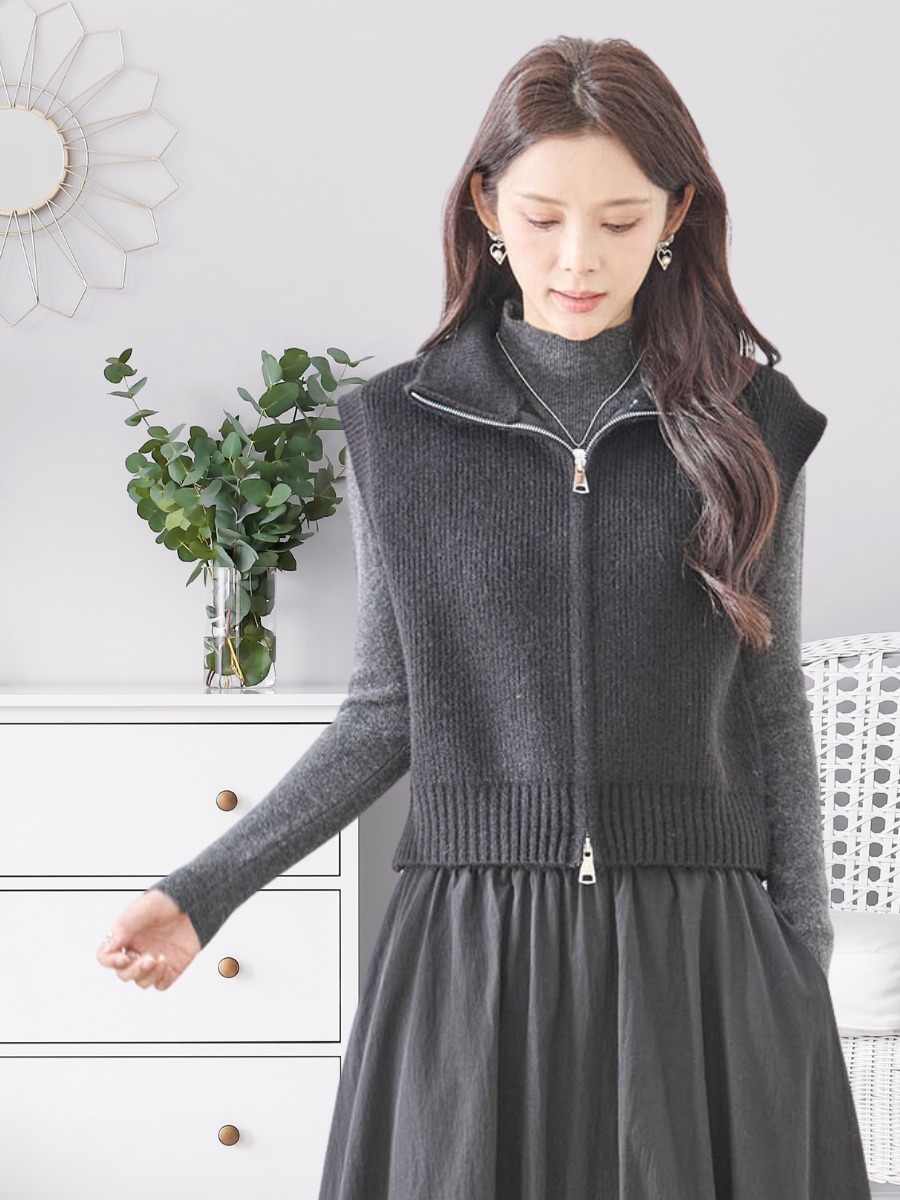 シンプルで洗練された印象のリブニットジップアップベスト!