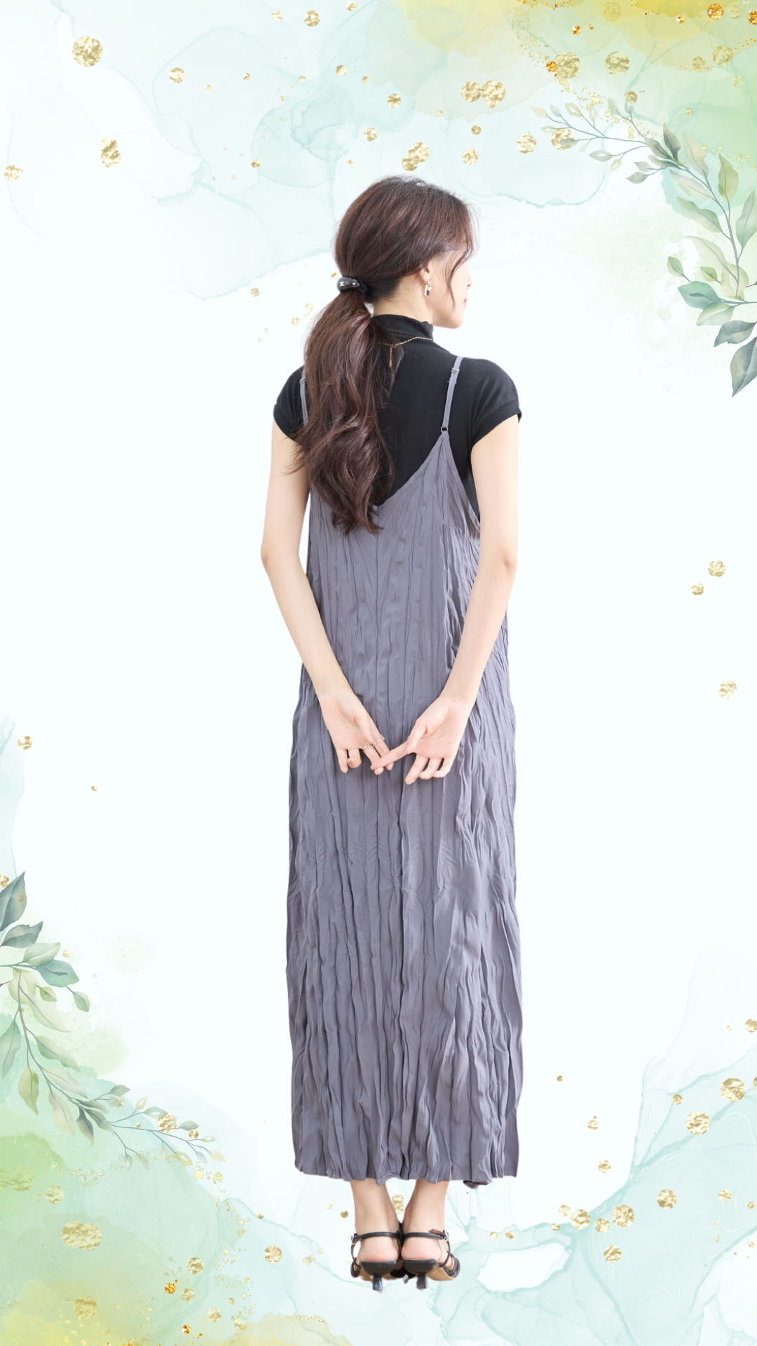 reve bleu【2025新作】【M〜L】ワッシャーキャミソールワンピース チャコールグレー