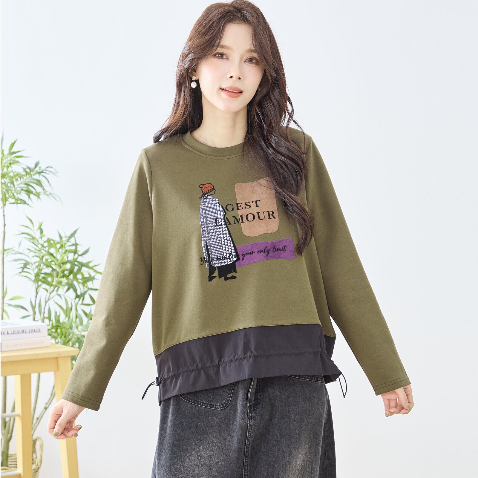 キーワード:#ガールプリント柄 #スウェット #長袖トップス #ドローコード