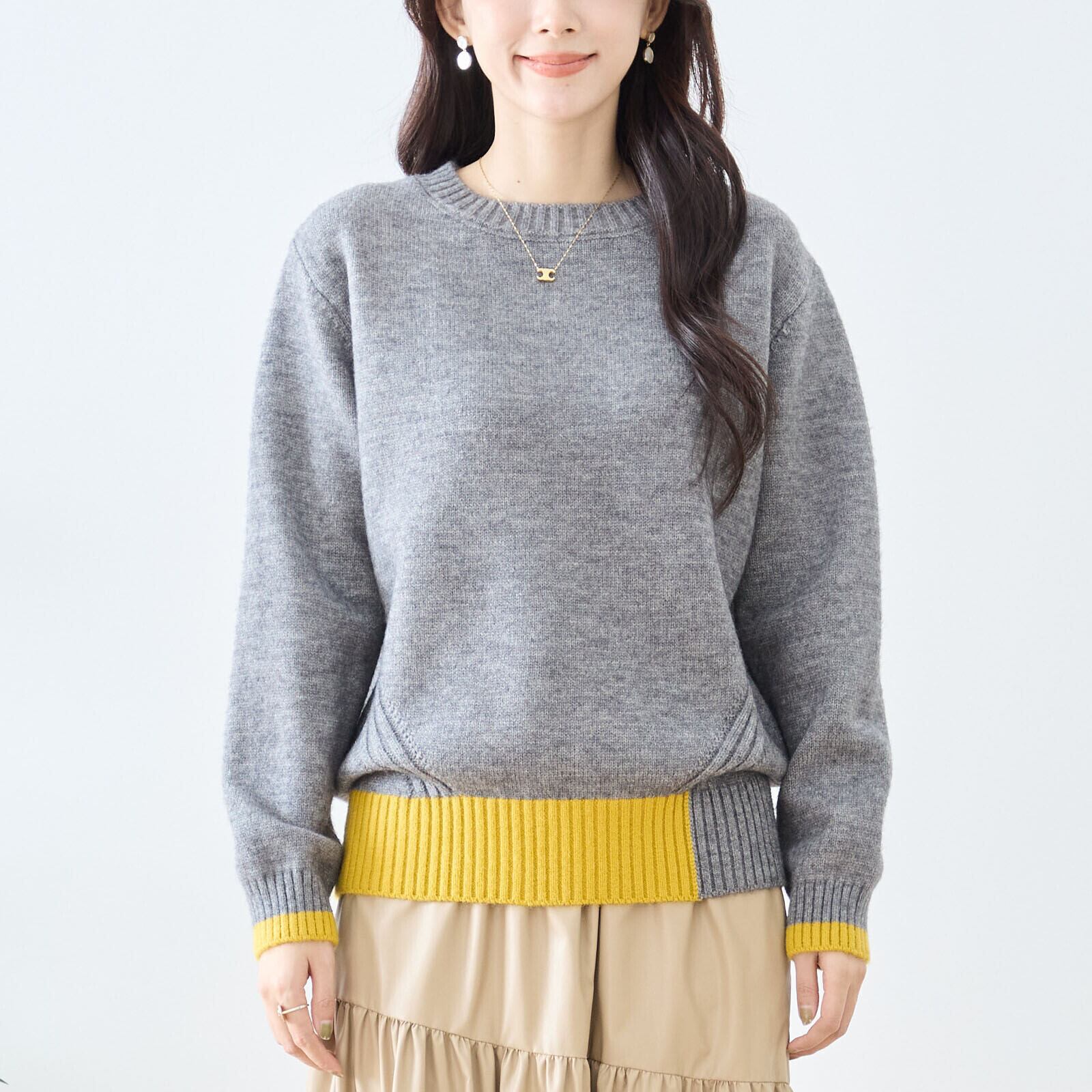 大胆な配色が目を引く、バイカラーのニットプルオーバー。