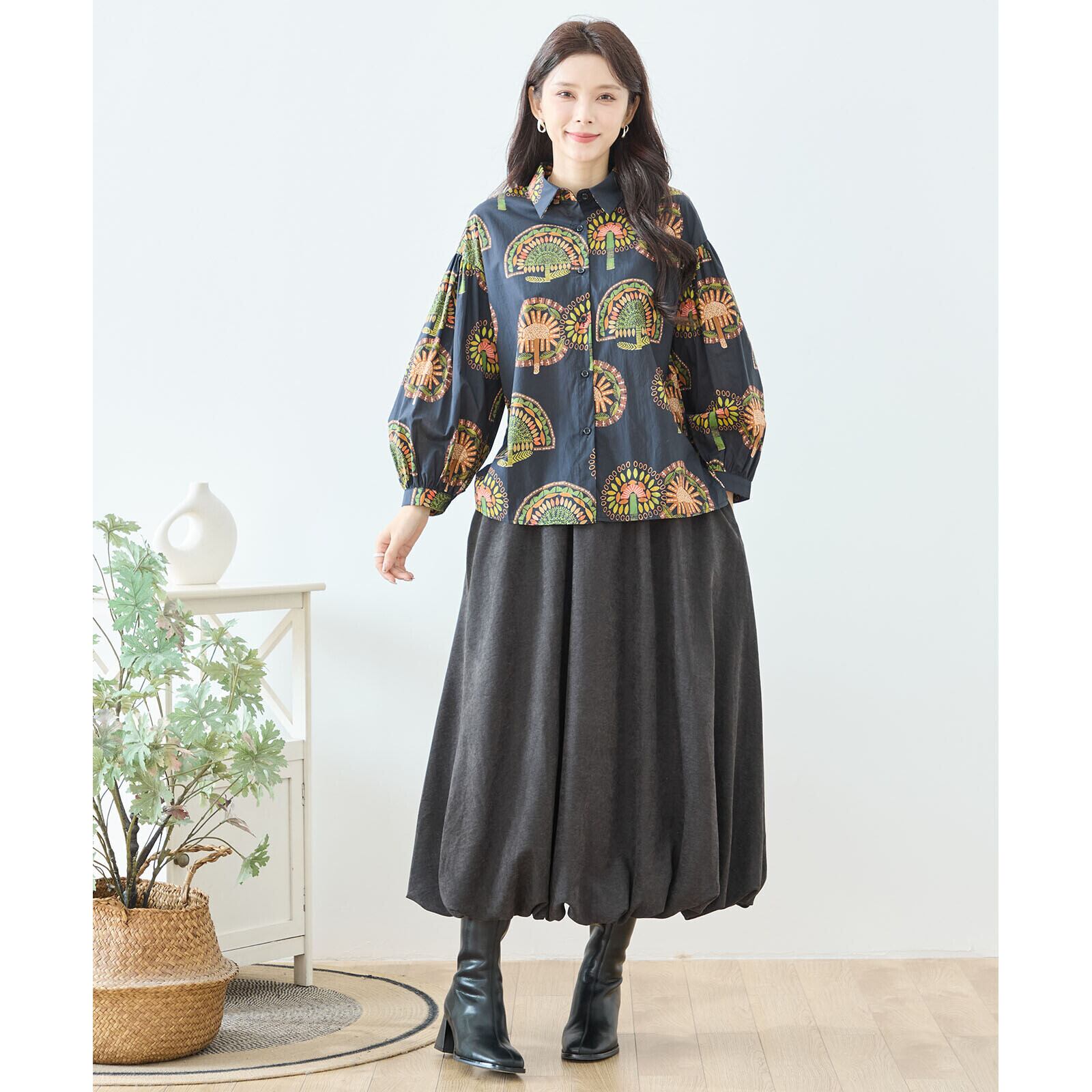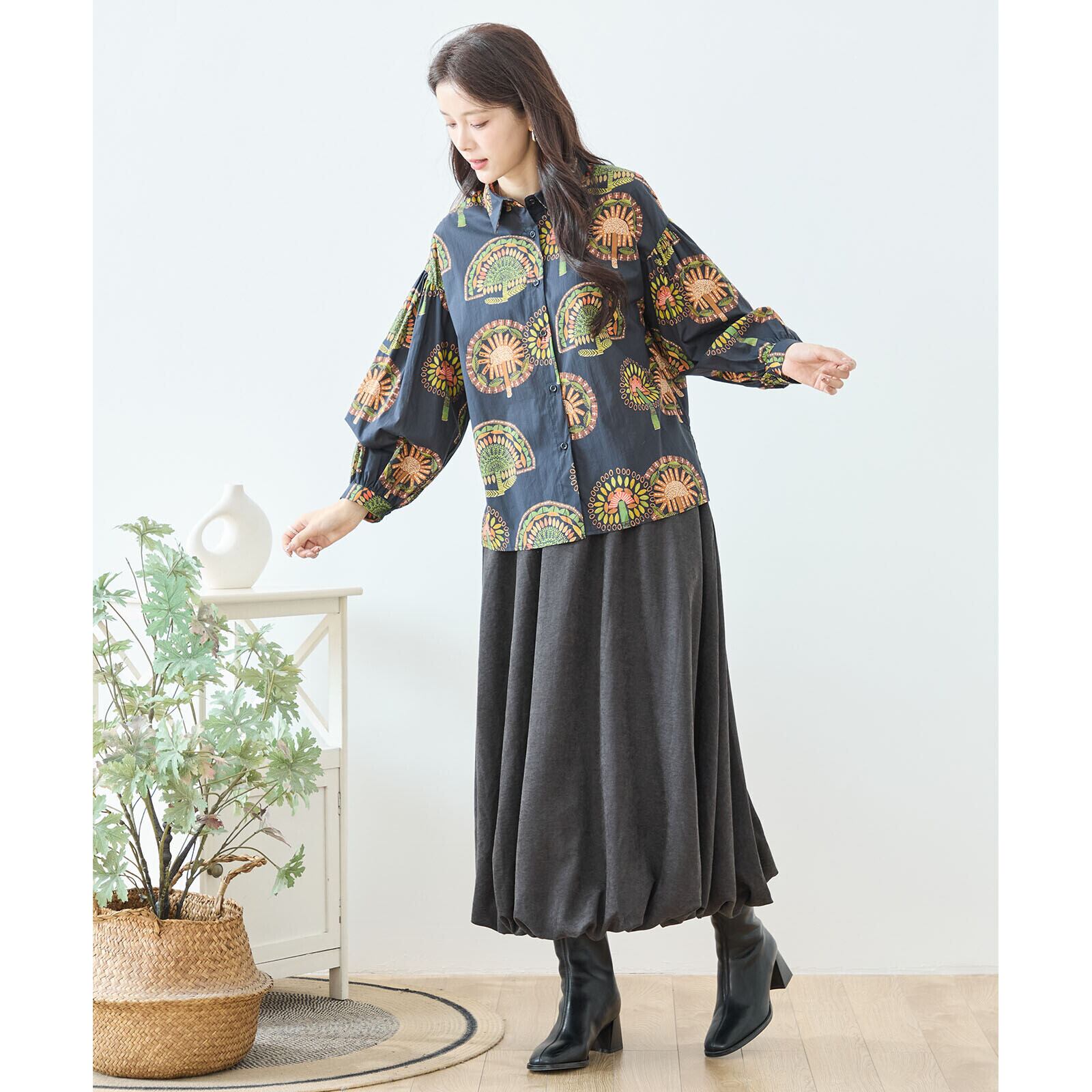 個性的なエスニックサークル柄が目を引く長袖シャツです。