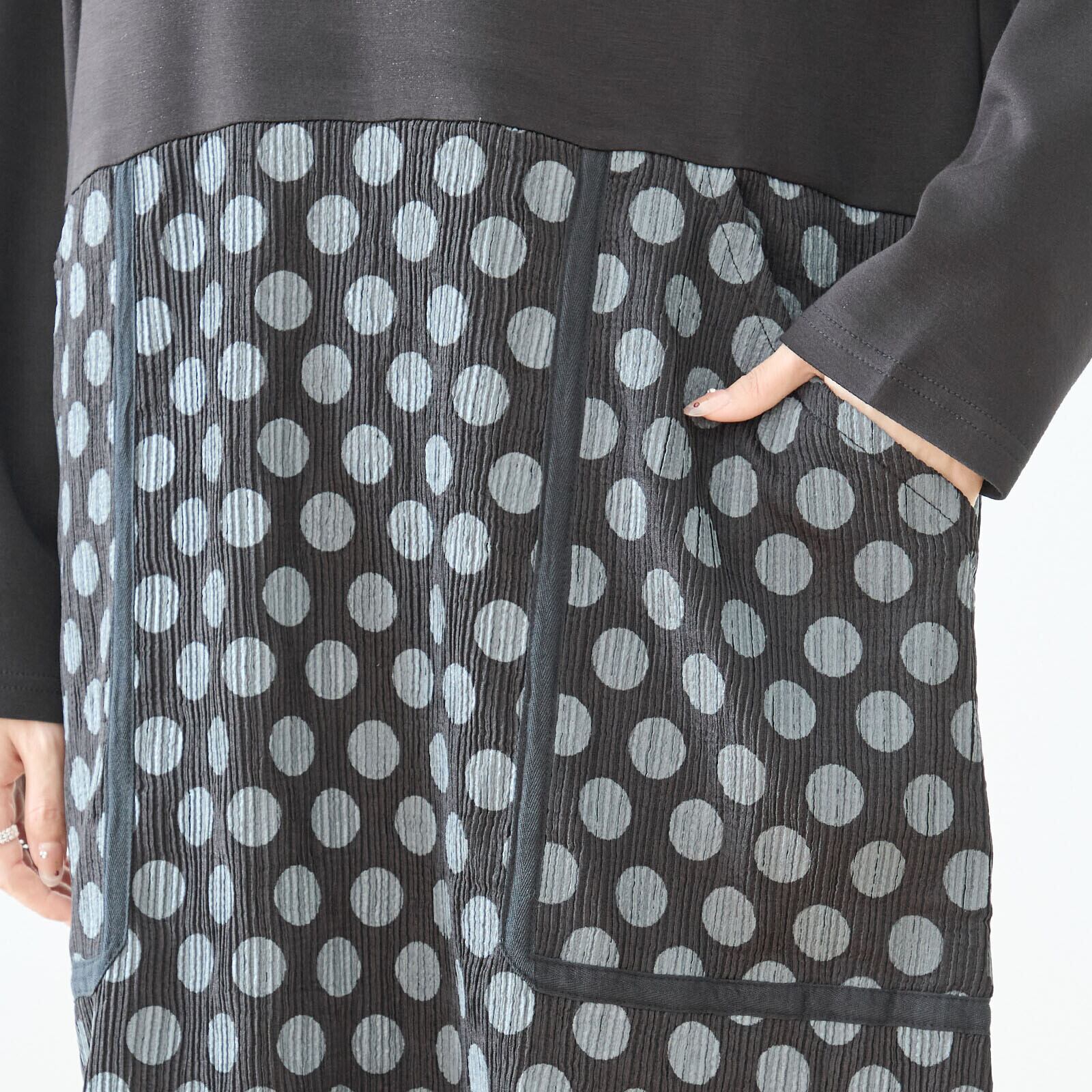 無地×ドット柄の異素材切替が魅力のチュニックワンピース。