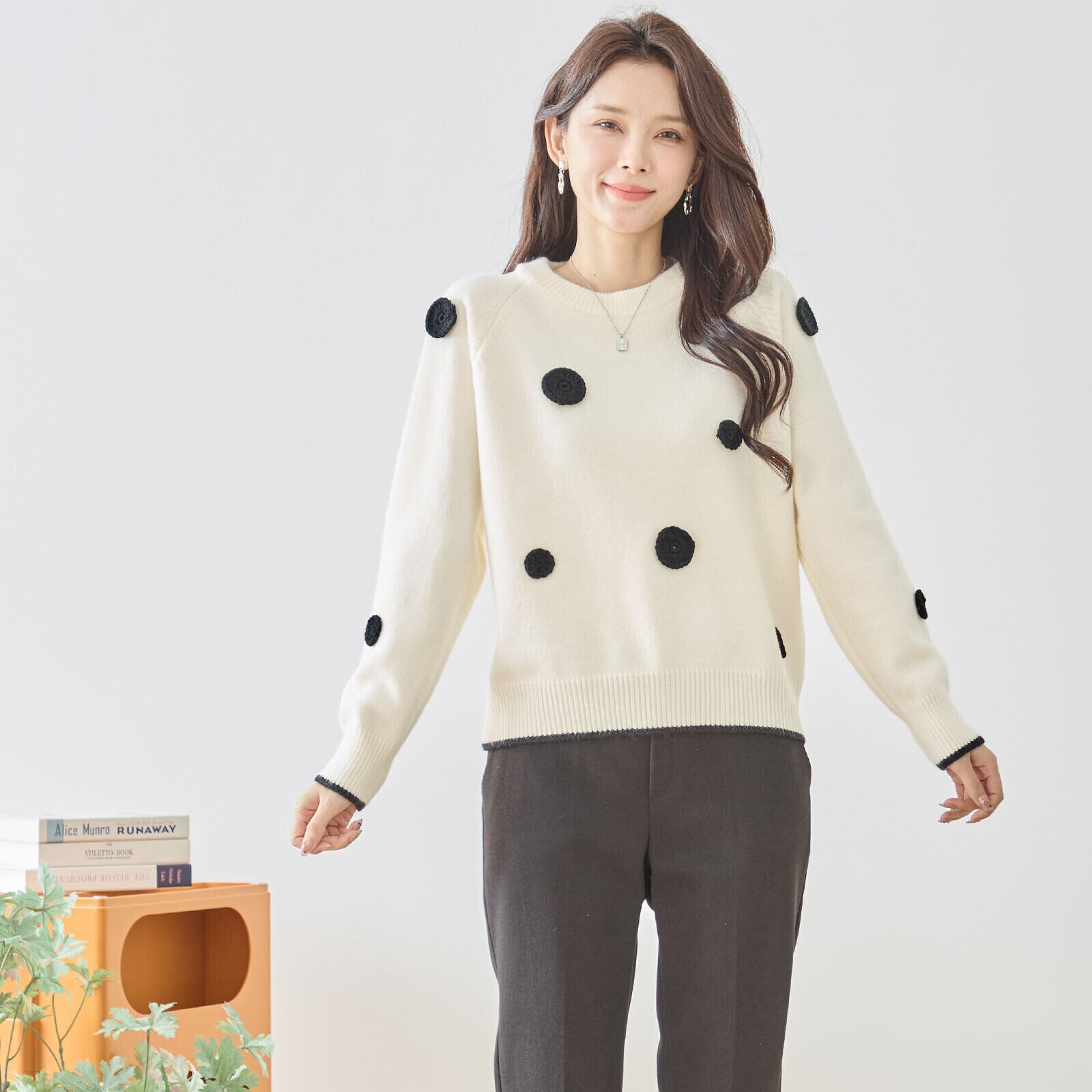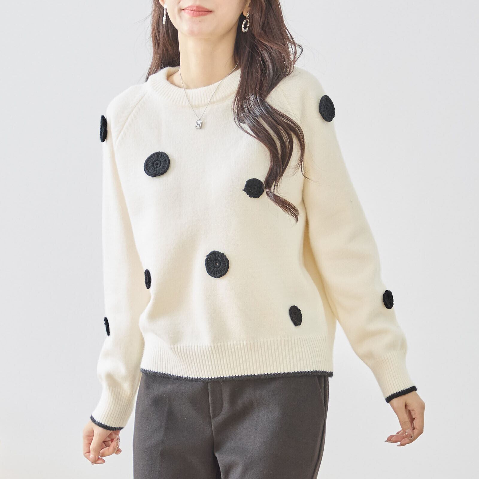 TRUBE【M〜L】立体ドットモチーフニットセーター アイボリー 秋冬春