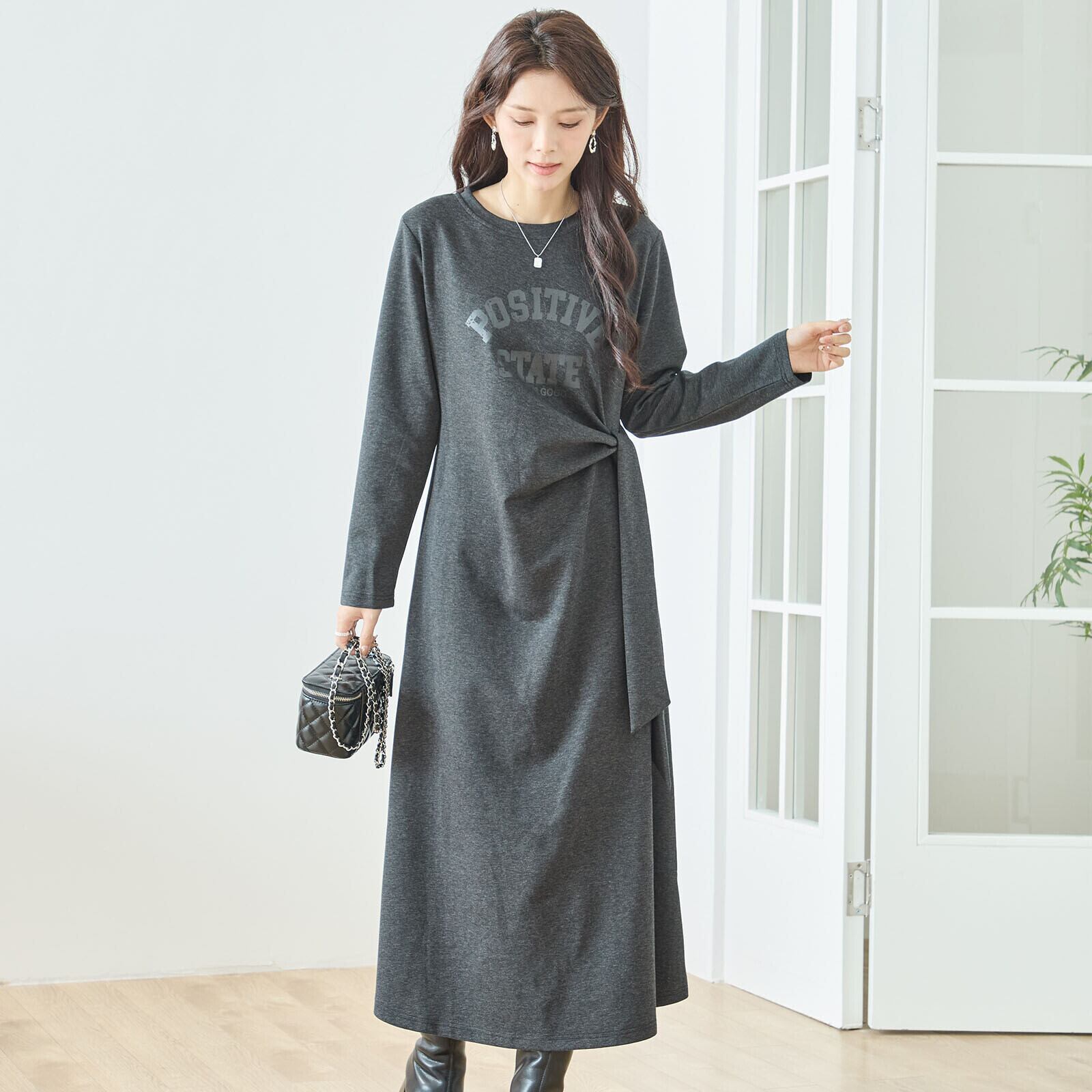キーワード:#ロゴプリント柄 #ウエストリボンワンピース