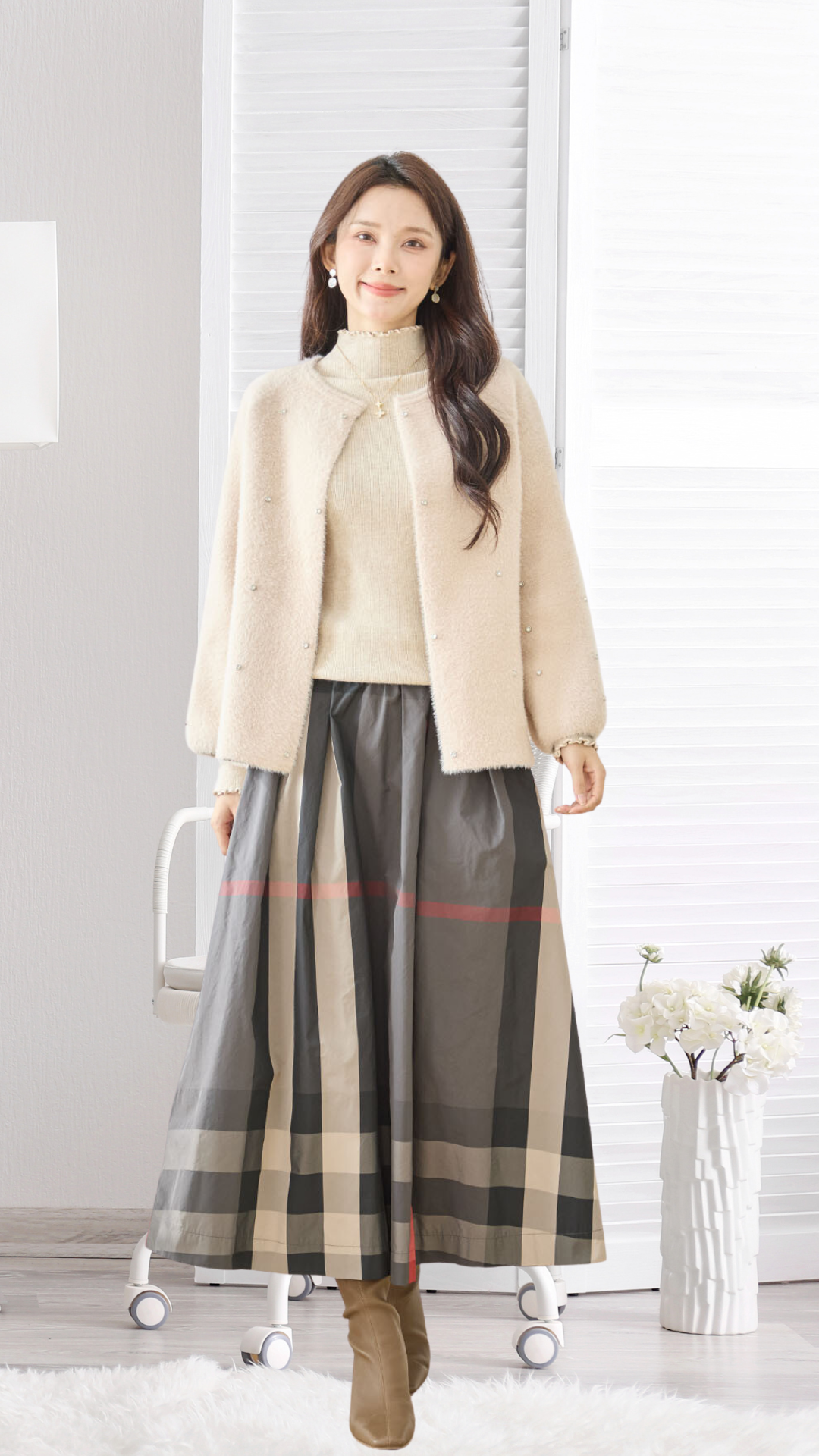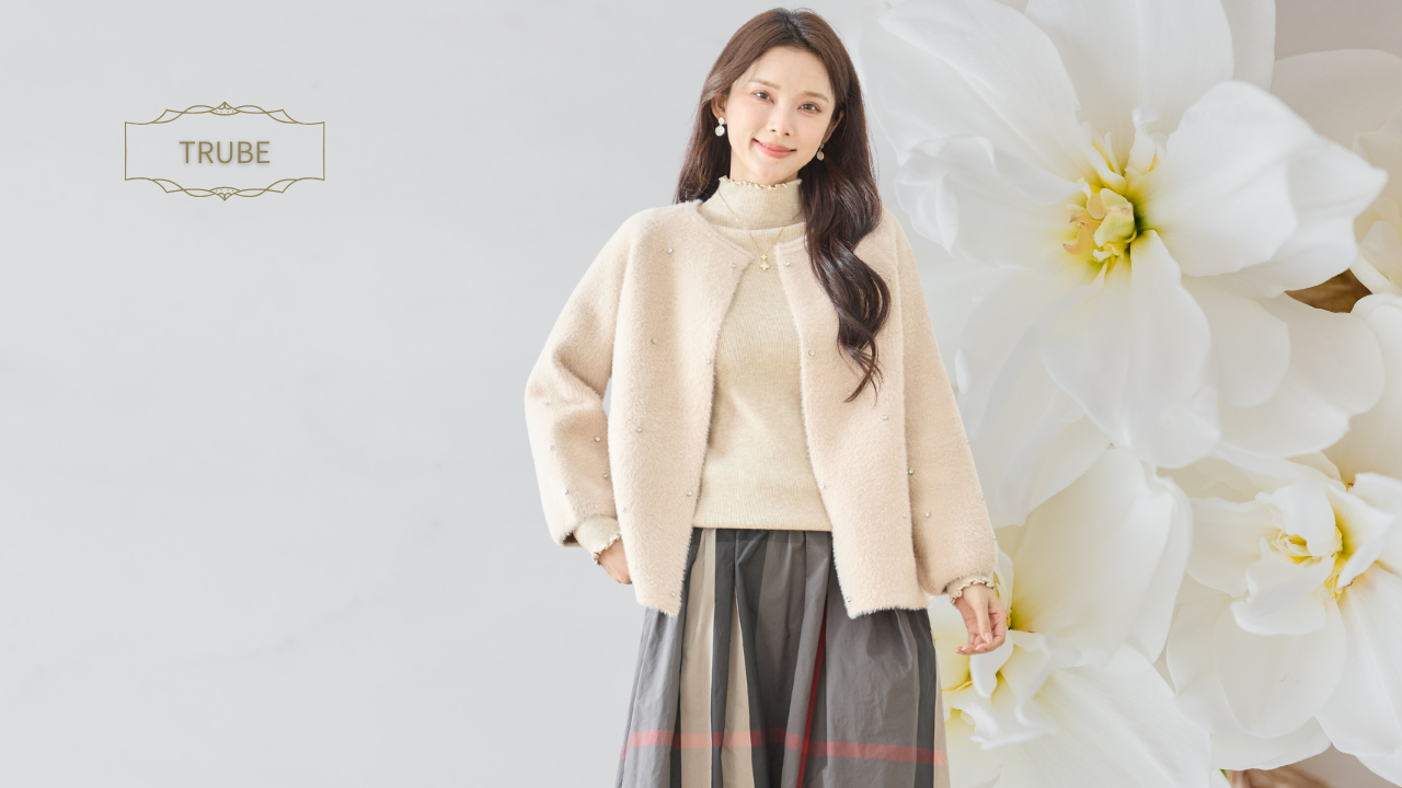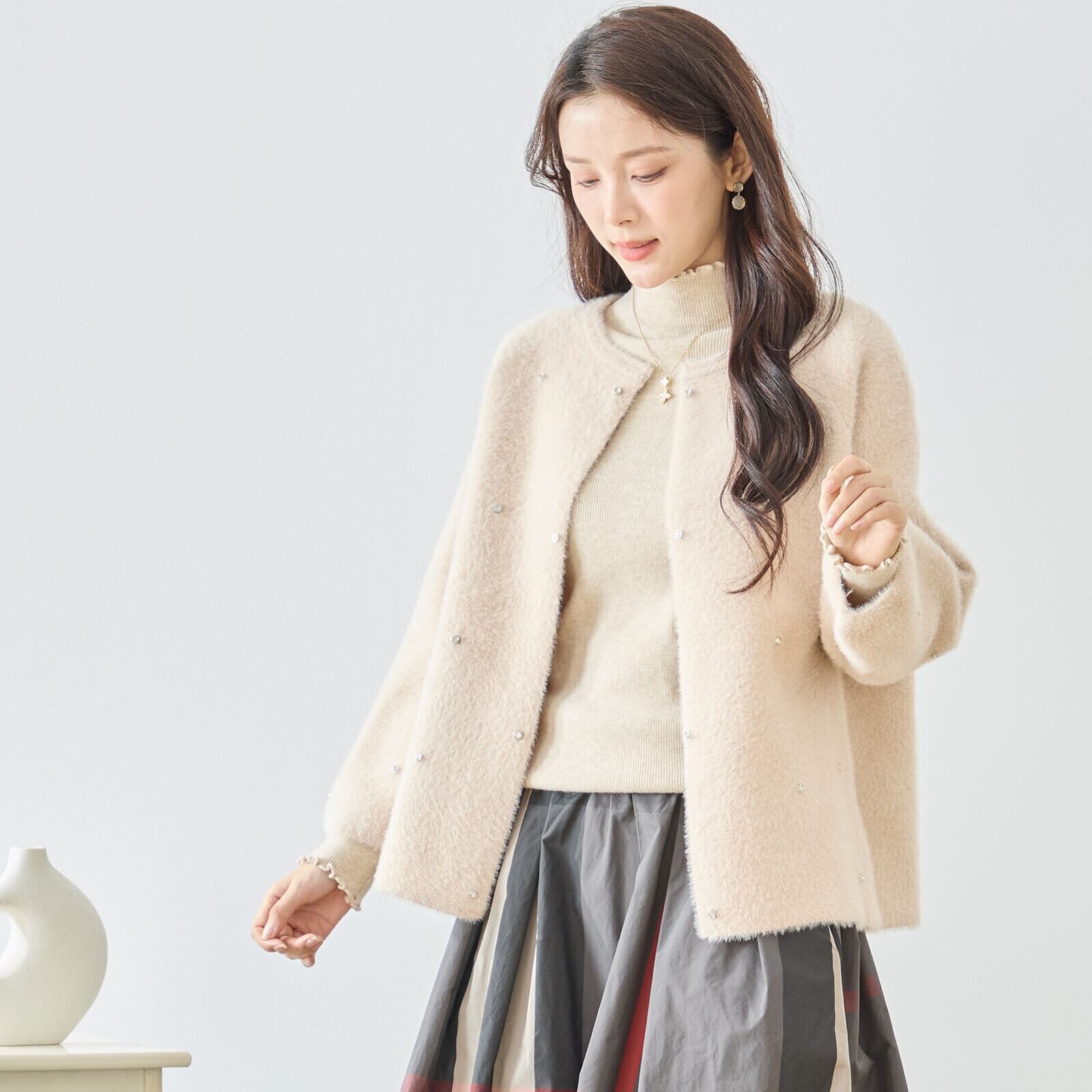 TRUBE【2025新作】【M〜L】ビジユー付きシャギーニットジャケット ベージュ