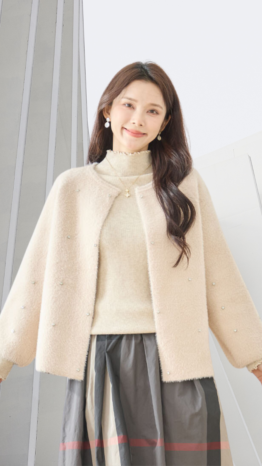 キーワード:#ビジュー付きジャケット #シャギーニットジャケット