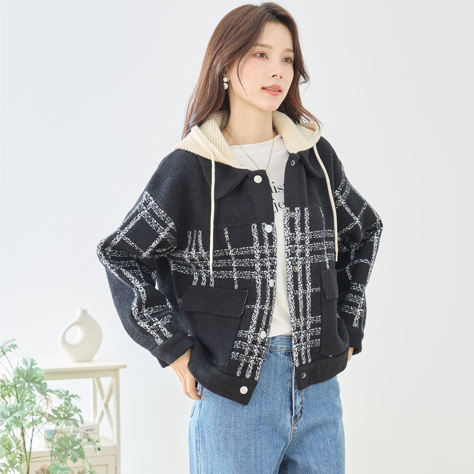 ■商品名 : ボアチェックフーディジャケット