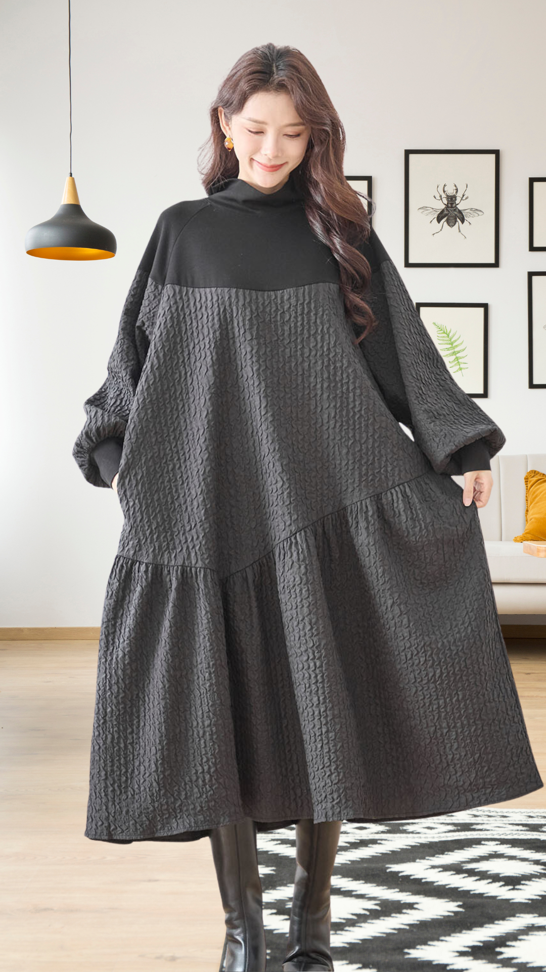 キーワード: #バルーンスリーブワンピース #モードレイヤードワンピース