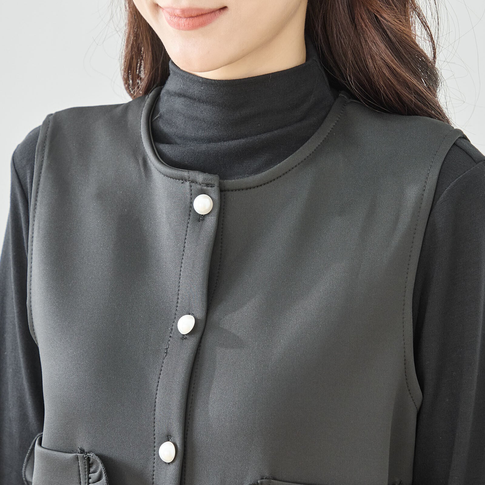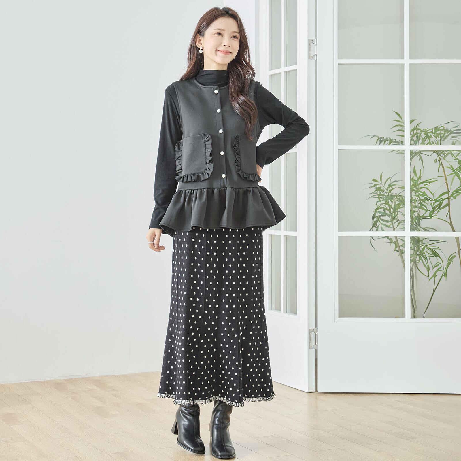 キーワード #フリル付きポケット #ペプラムベスト