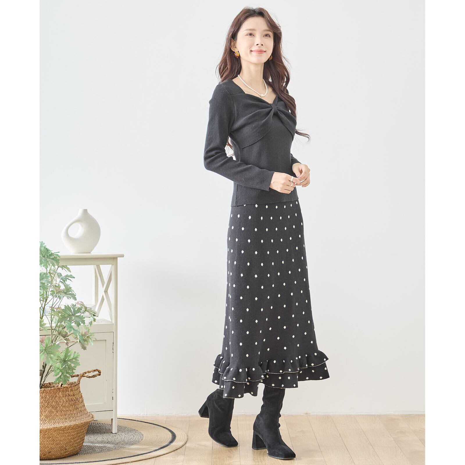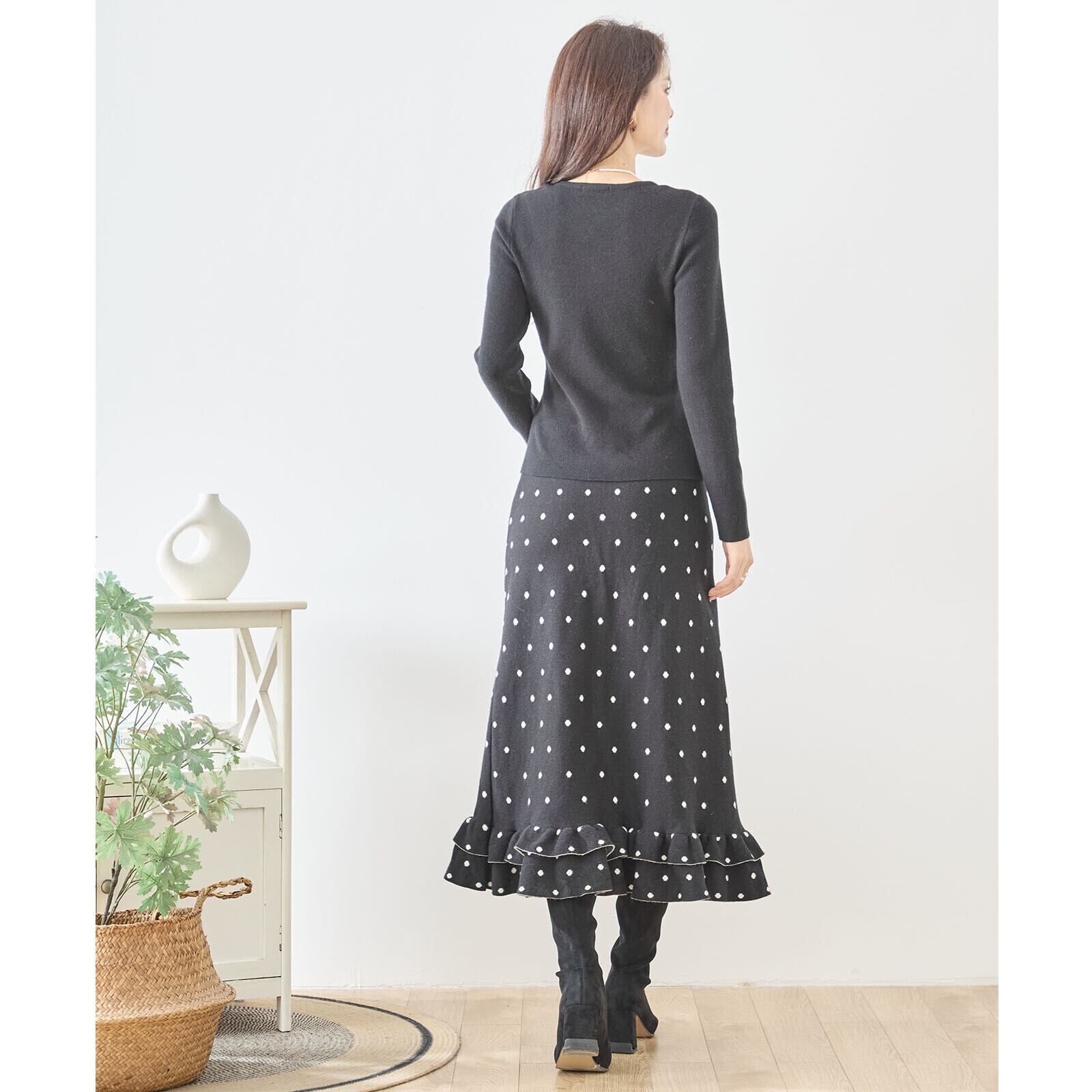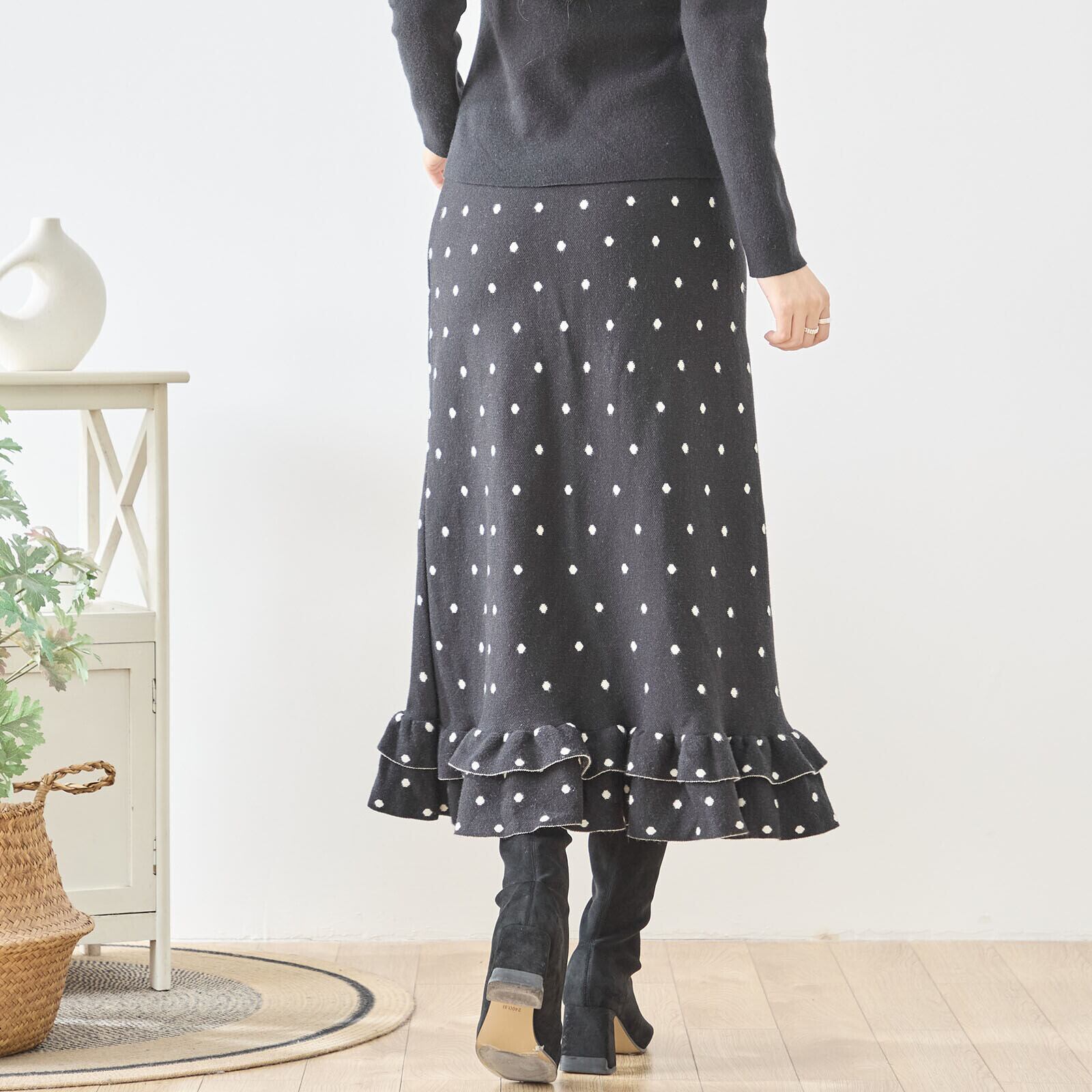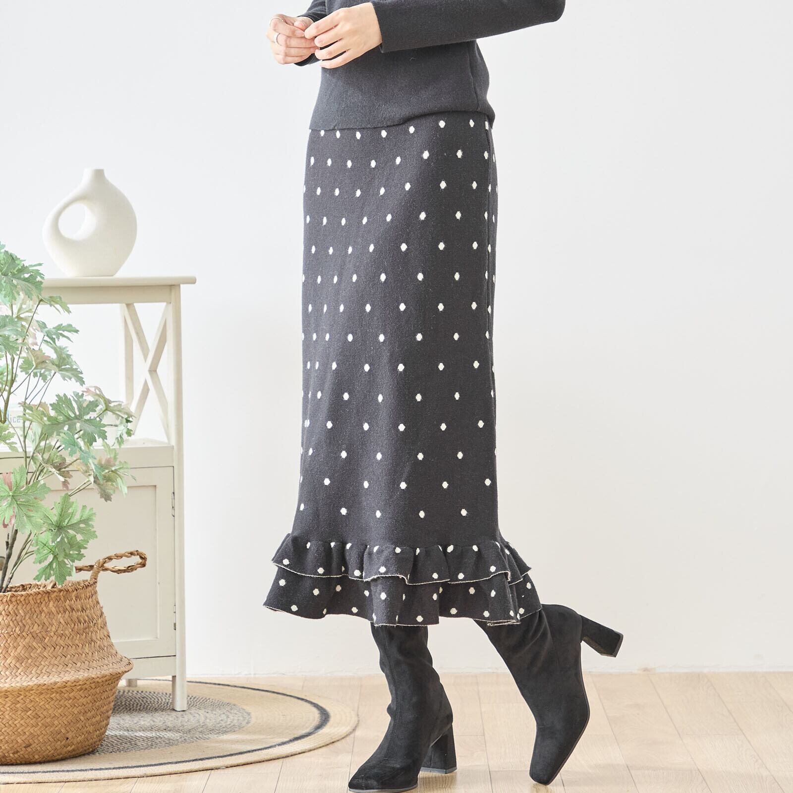 キーワード #ドットジャガード柄 #裾フリルデザイン #ウエスト総ゴム #ニットスカート
