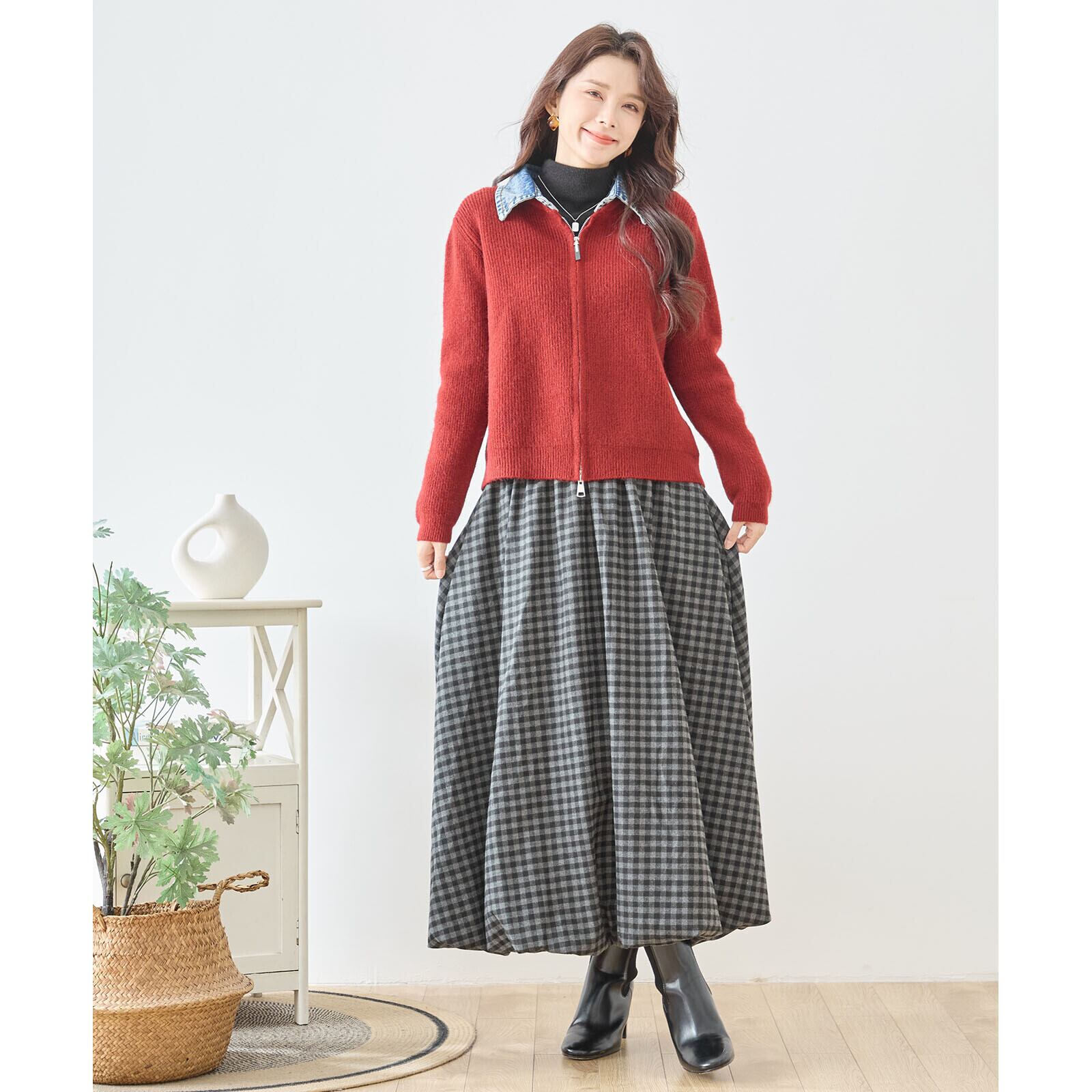 キーワード #バルーンシルエット #チェック柄スカート #ウエスト総ゴム #秋冬ファッション