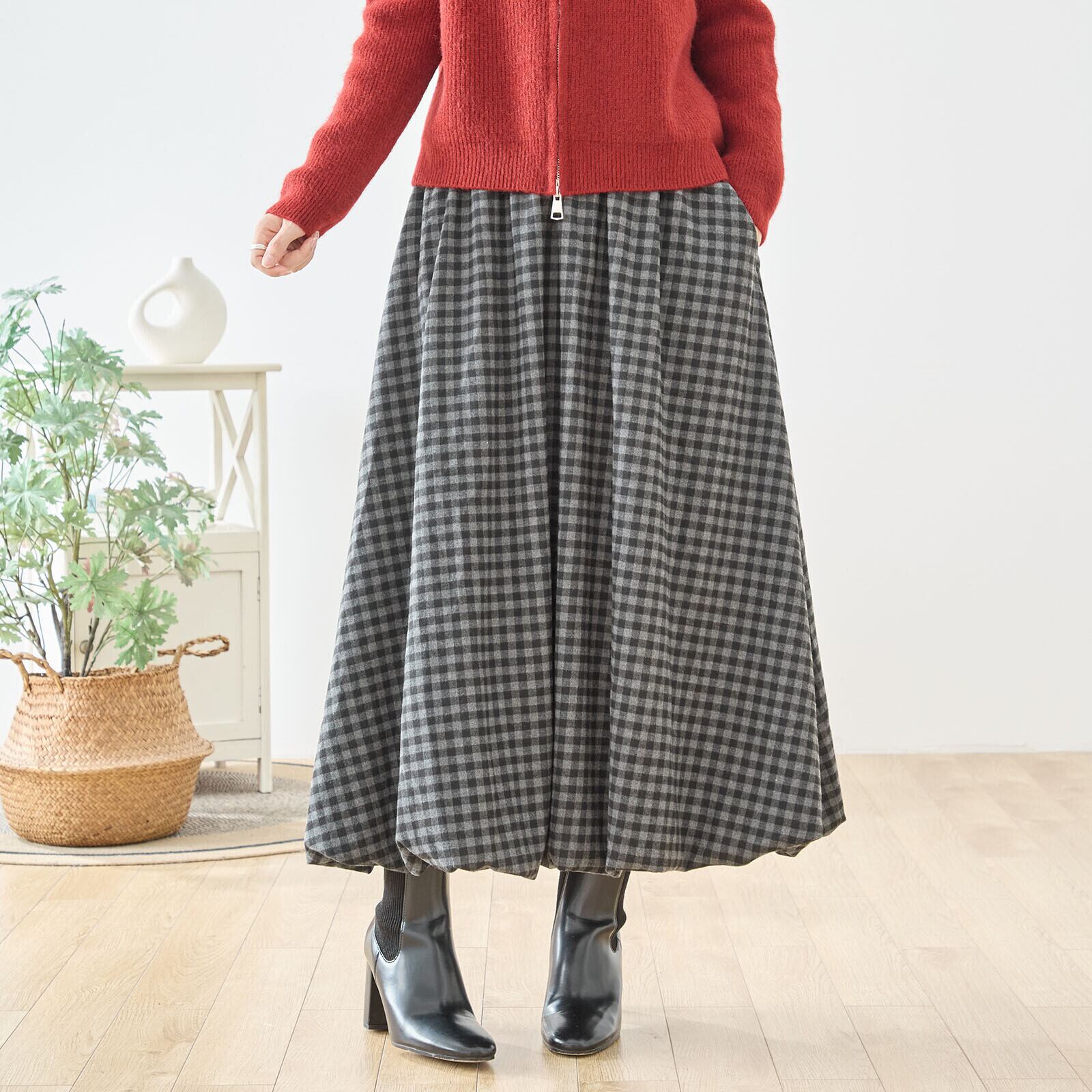 秋冬シーズンにぴったりのバルーンシルエットが魅力のチェック柄スカート。