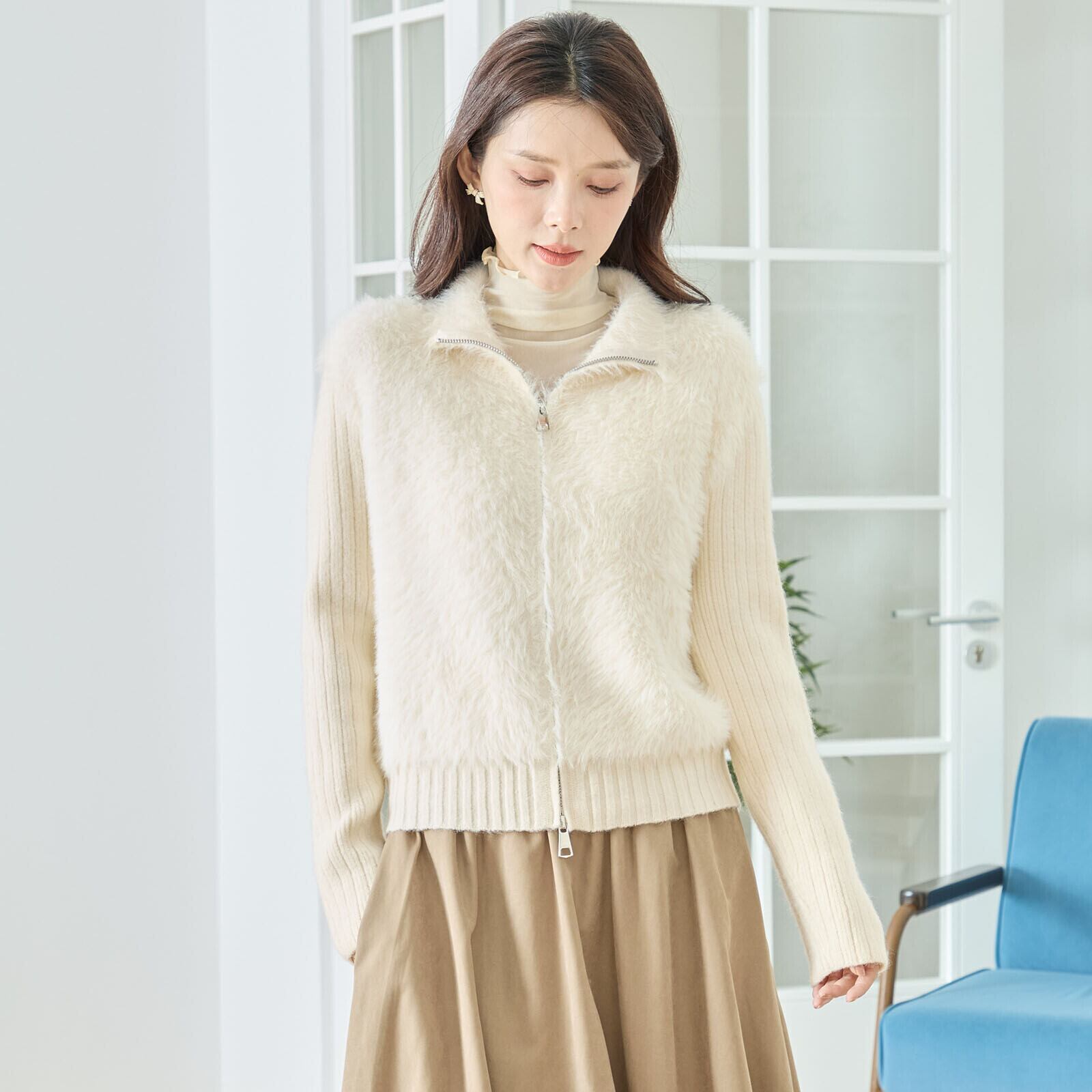 ブルゾン フェイクファーニットブルゾン レディース M~L 2025 秋冬 ベージュ