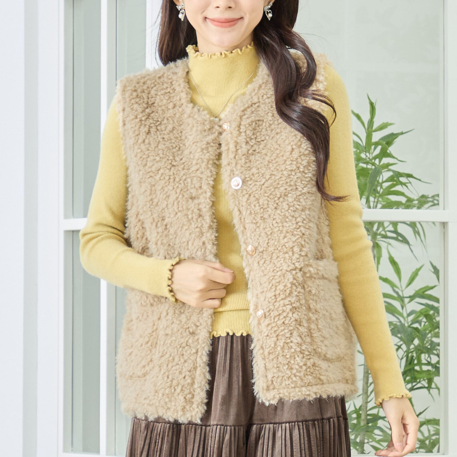【SALE 15%OFF 12/16 10:00まで】ベスト フェイクファーベスト 前開き レディース M~L 2025 秋冬 ベージュ
