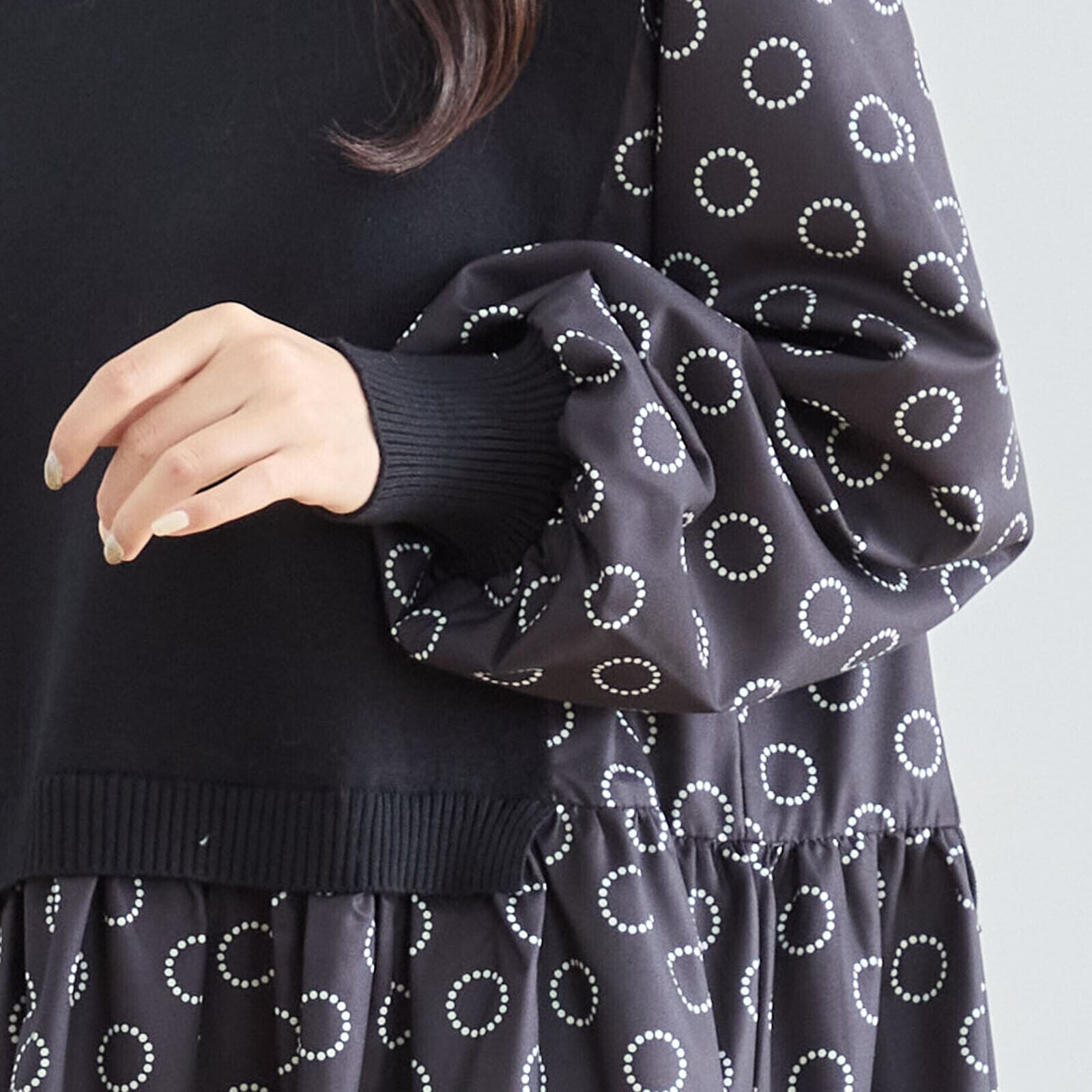 ・商品名 : 異素材ドッキングサークル柄ワンピース