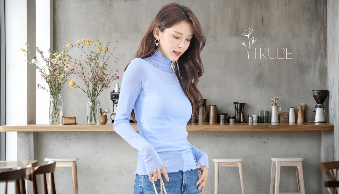 Tシャツ・カットソー TRUBE メロウシアーハイネックトップス【M~L】2025新作 スカイブルー