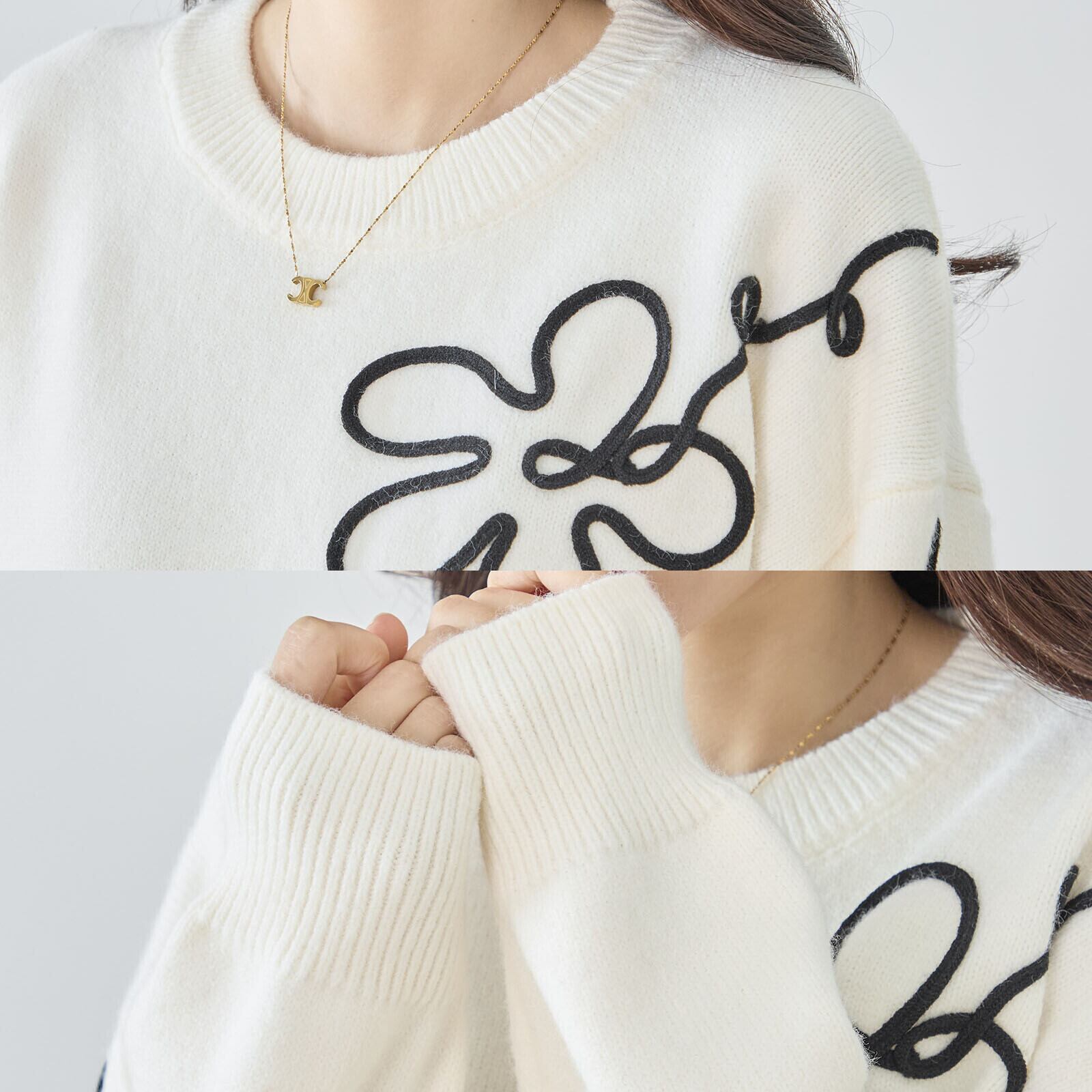 ・商品名 : セーター フラワー ライン描画風 ニットプルオーバー