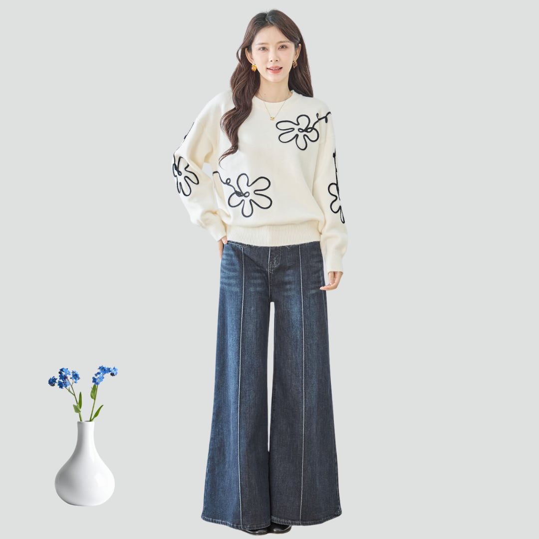 キーワード:#フラワーライン #アイボリーセーター #ニットプルオーバー