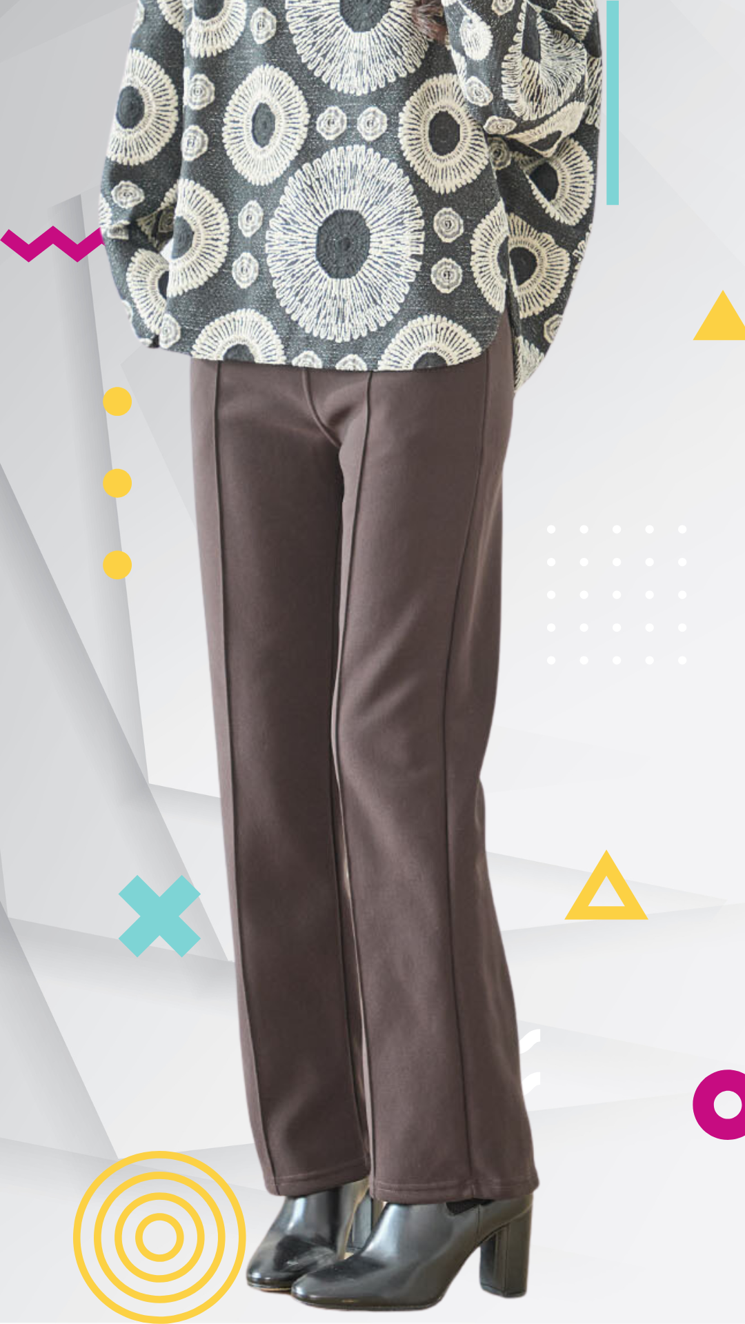 【SALE 8%OFF 12/29 10:00まで】パンツ 裏起毛ストレートセンタープレスパンツ 【M~L】【L~LL】レディース ブラウン