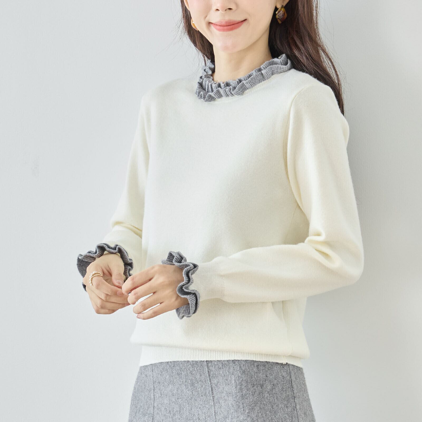 ・商品名 : セーター ネック袖口配色リブメロウフリル ニットトップス