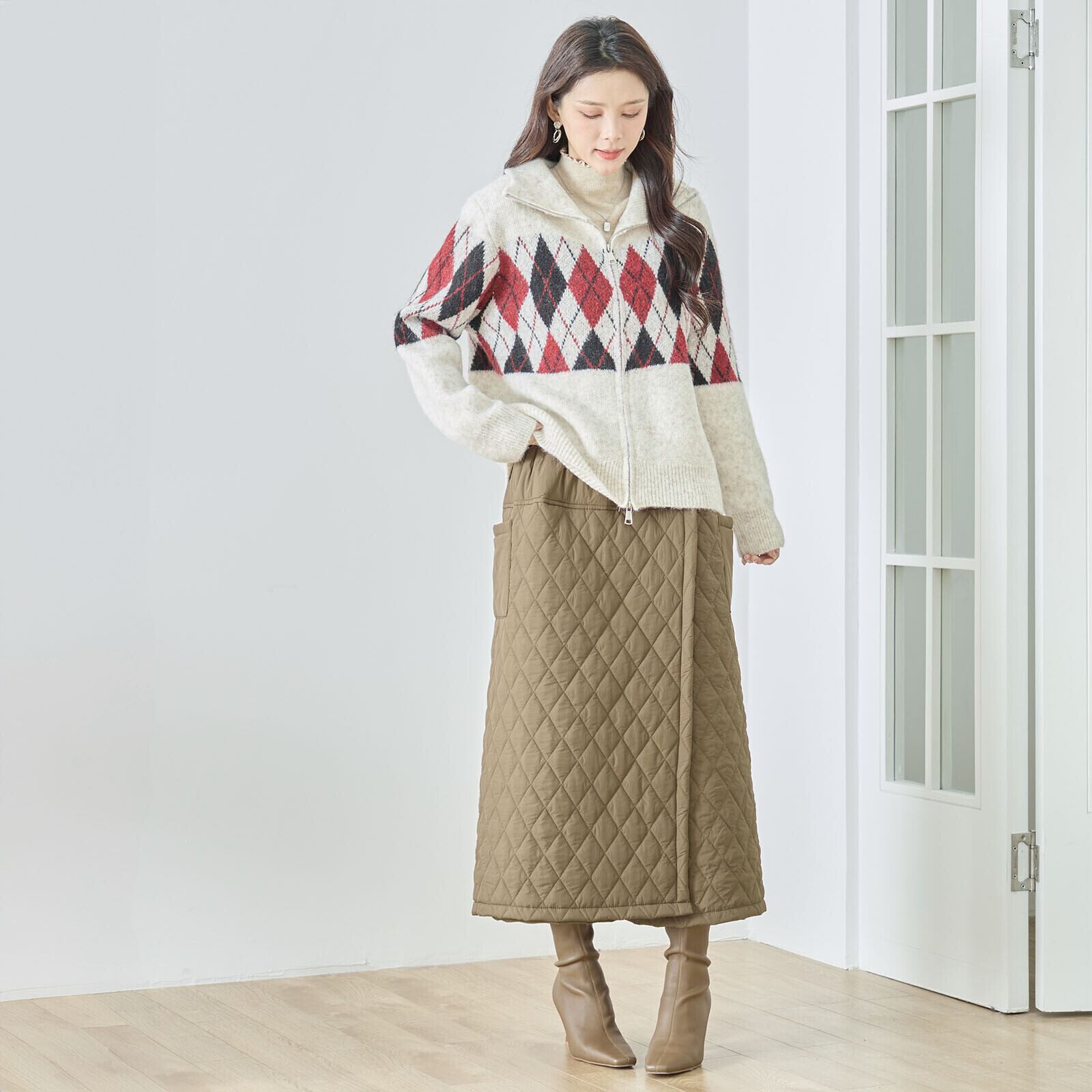 キーワード:#キルティング #ワイドパンツ #ブラウン #巻スカート風ワイドパンツ #ウィンターボトムス