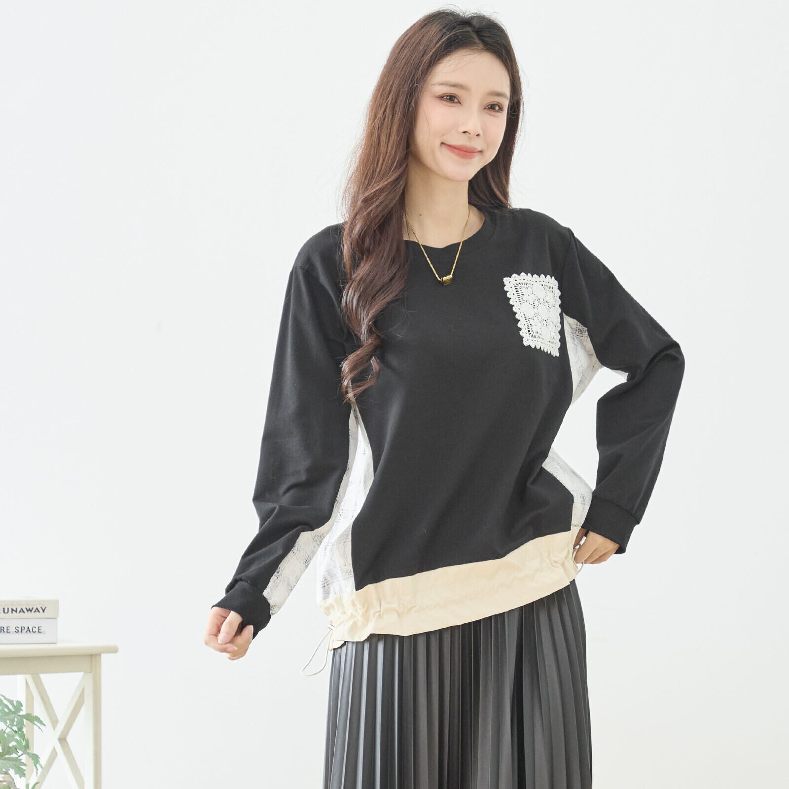 キーワード:#春 #秋 #冬 #レースアクセントカットソー #裾ドローストリング #ロングTシャツ