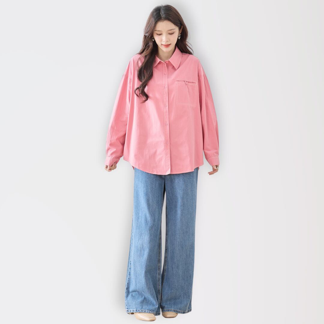 キーワード:#胸ポケット #ピンク #春 #夏 #秋 #デイリースタイル #カジュアルシャツ