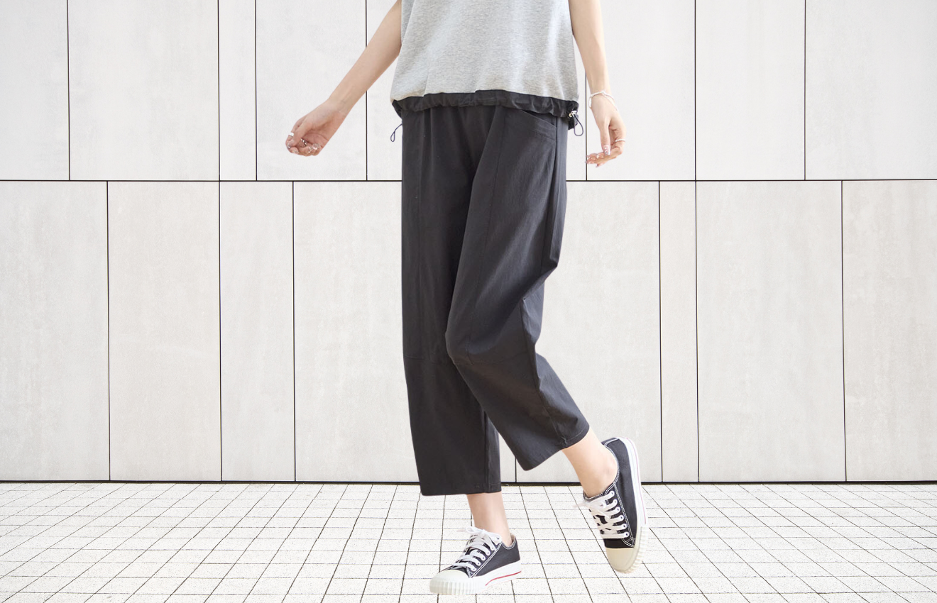 ウエストはゴム仕様で、ストレスフリーな着心地が嬉しいポイント。
