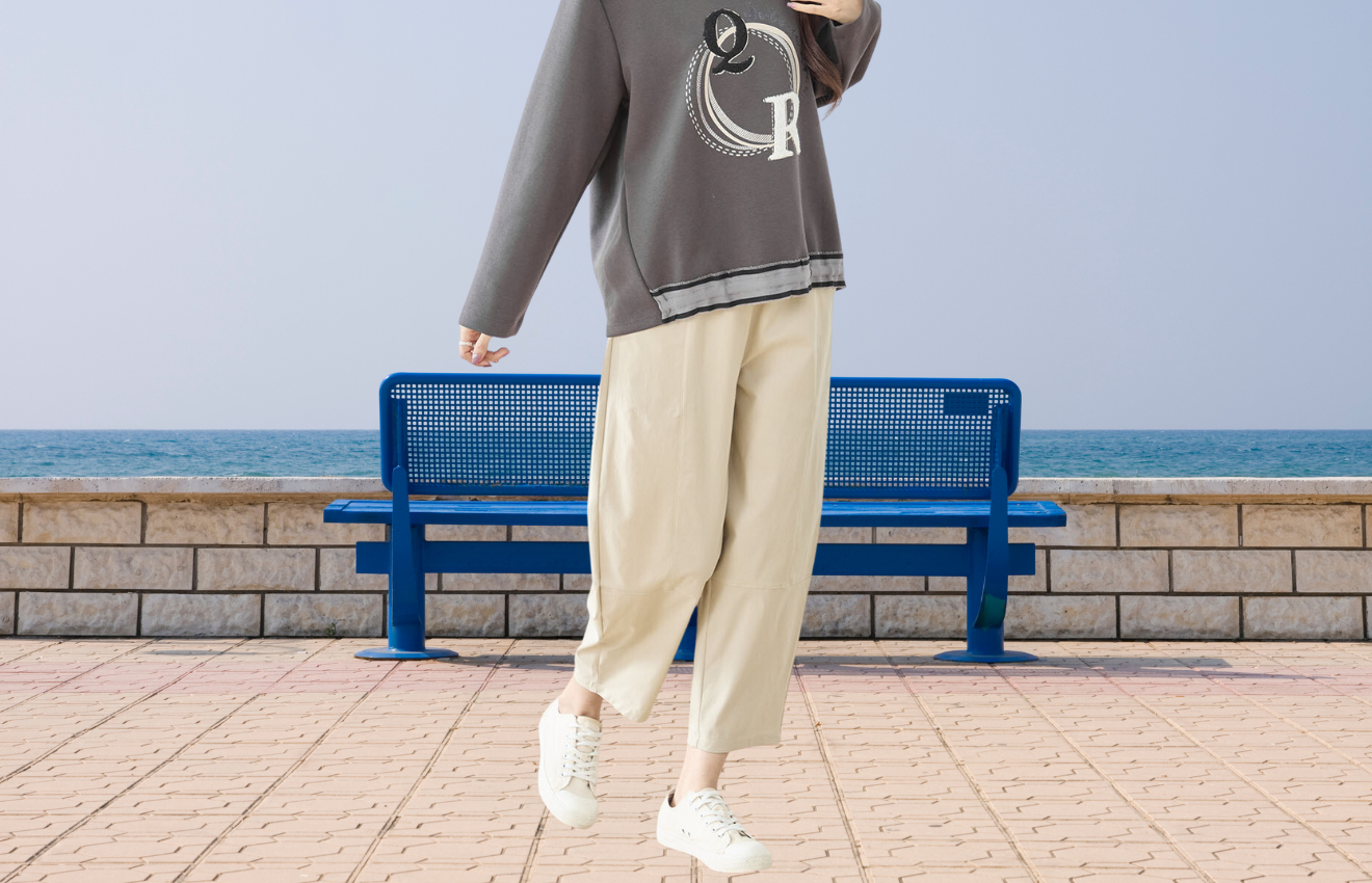 柔らかな素材感と程よいボリュームが、リラックス感のあるスタイルを演出。