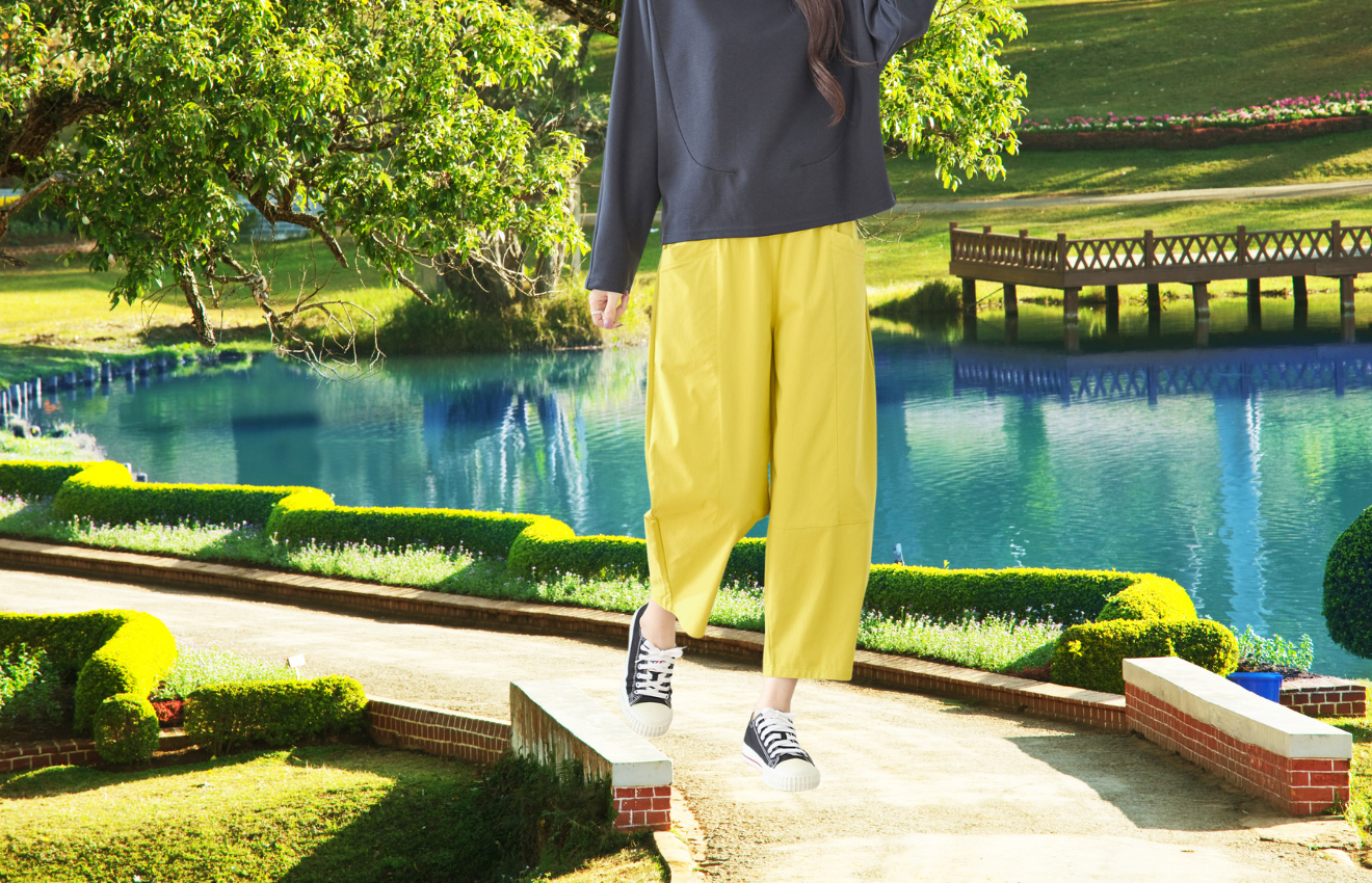 キーワード:#春 #夏 #秋 #デイリースタイル #タック入り ウエストゴム仕様 #バルーンパンツ