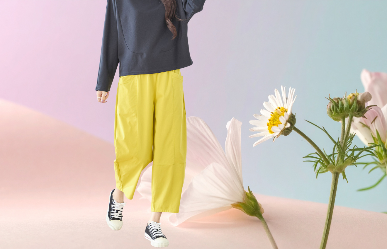 キーワード:#春 #夏 #秋 #デイリースタイル #タック入り ウエストゴム仕様 #バルーンパンツ