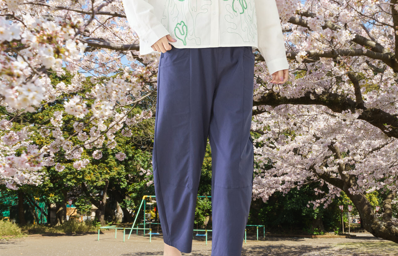 ウエストはゴム仕様で、ストレスフリーな着心地が嬉しいポイント。