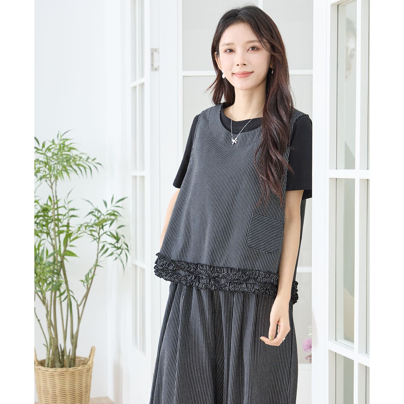 キーワード:#春 #夏 #デイリースタイル #ノースリーブ #フリル #ストライプ