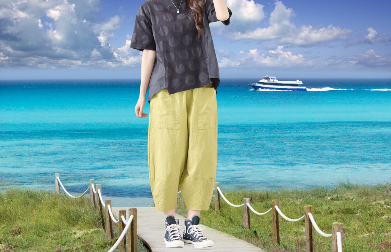 TRUBE ウォッシュドコットンクロプトパンツ (M~L) キミドリ