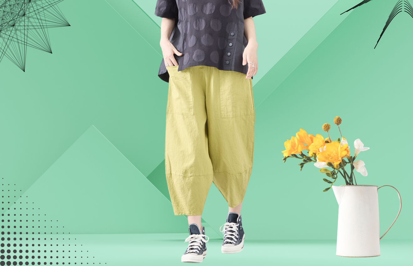 風合い豊かなウォッシュドコットンを使用した、キミドリのクロプトパンツが再登場!