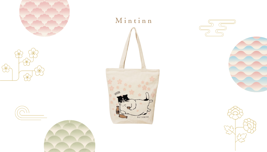Mintinn A4縦型トートバッグ 28011 マツネコ桜