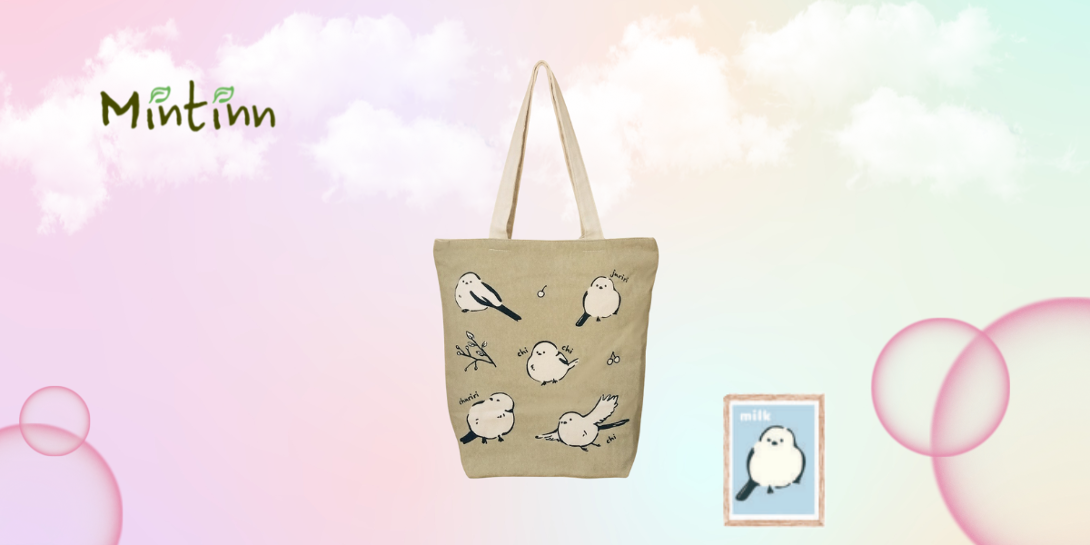 Mintinn A4縦型トートバッグ 21183 みるくオフショット(シマエナガ)