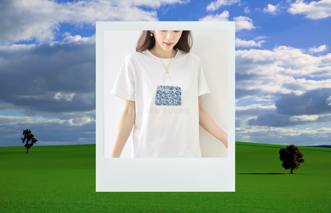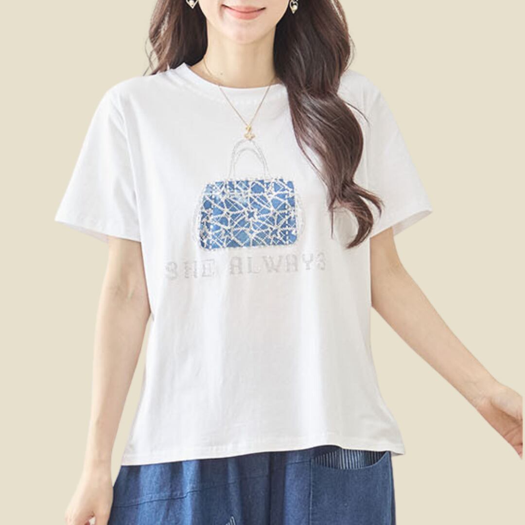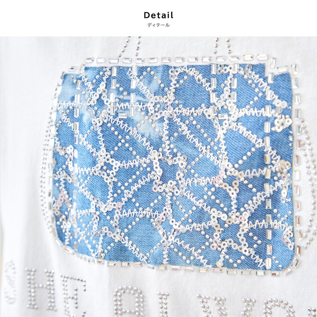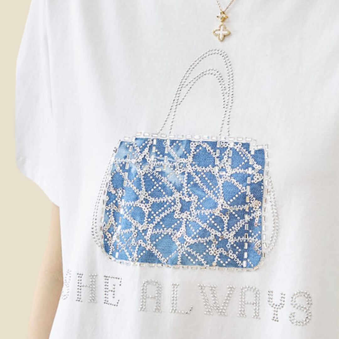 キーワード:#Tシャツ #バッグモチーフ #スパンコール #ホワイト #おしゃれ #デイリーユース #カジュアル #個性的