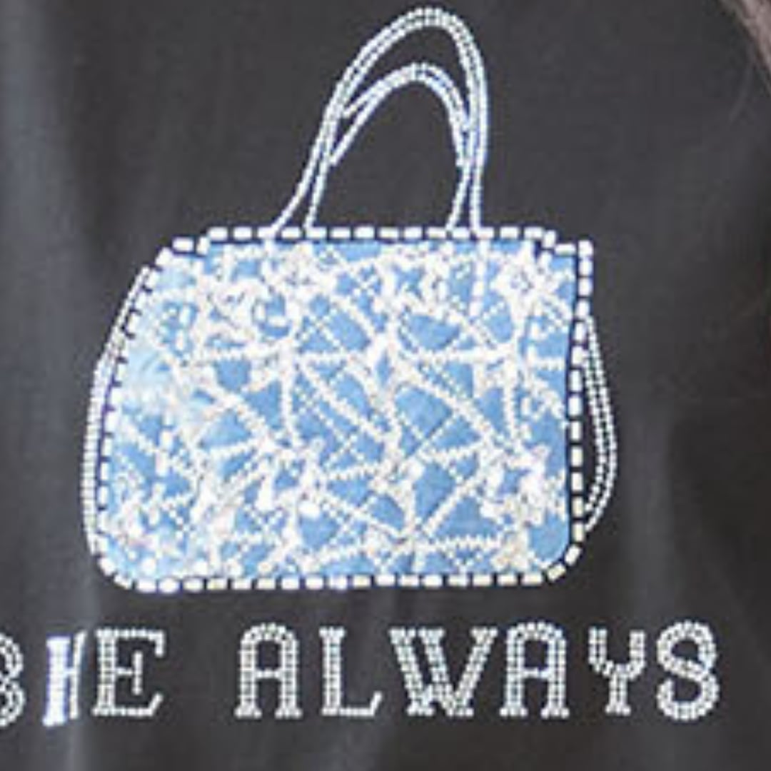 キーワード:#Tシャツ #バッグモチーフ #スパンコール #ブラック #おしゃれ #デイリーユース #カジュアル #個性的