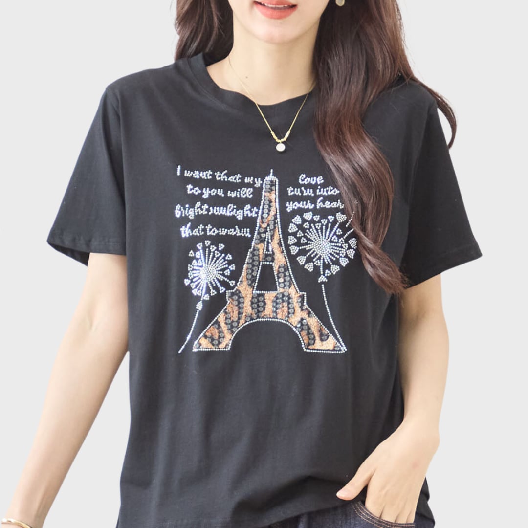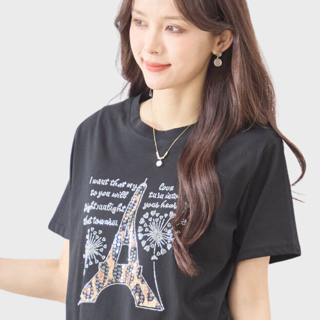 キーワード:#Tシャツ #エッフェル塔 #スパンコール #ブラック #おしゃれ #デイリーユース #カジュアル #個性的