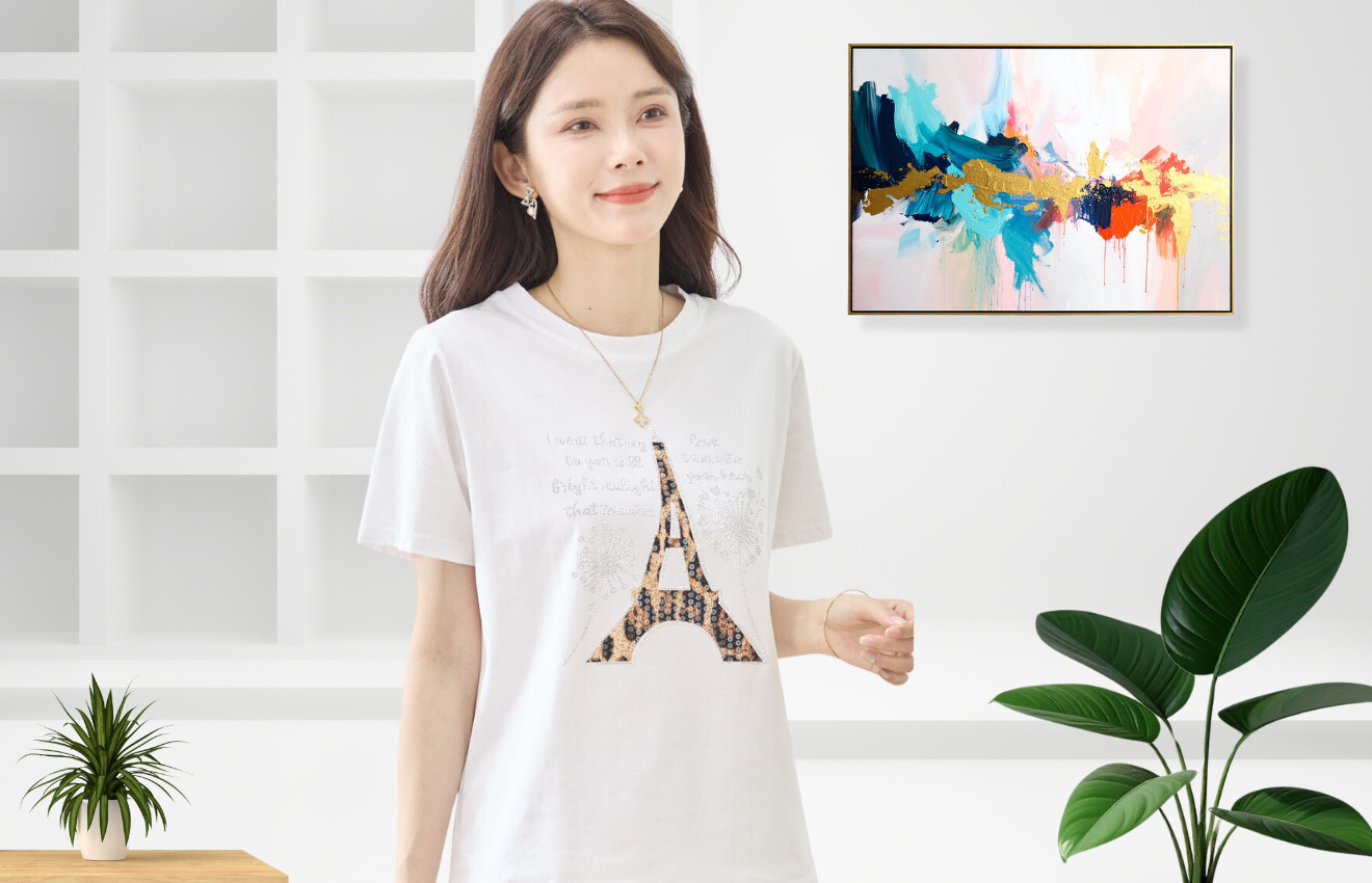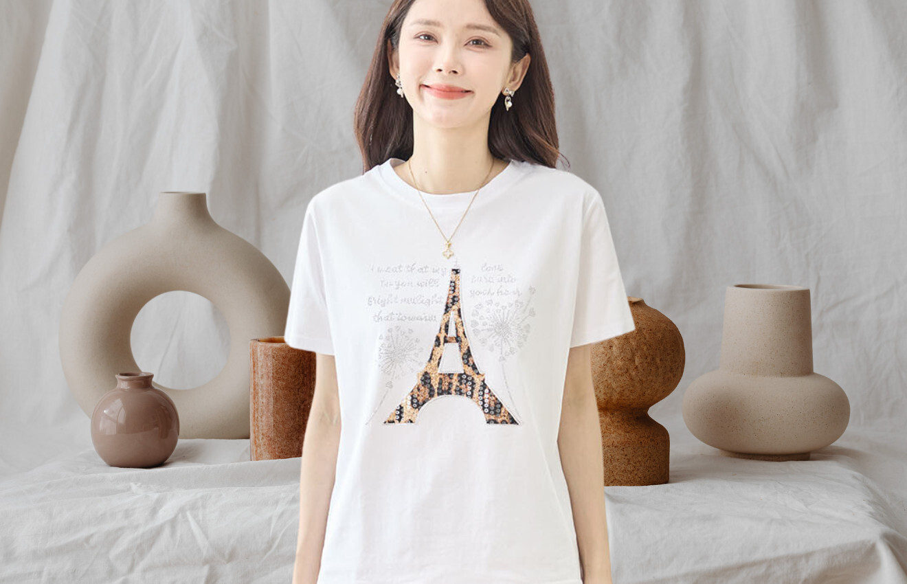 キーワード:#Tシャツ #エッフェル塔 #スパンコール #ホワイト #おしゃれ #デイリーユース #カジュアル #個性的