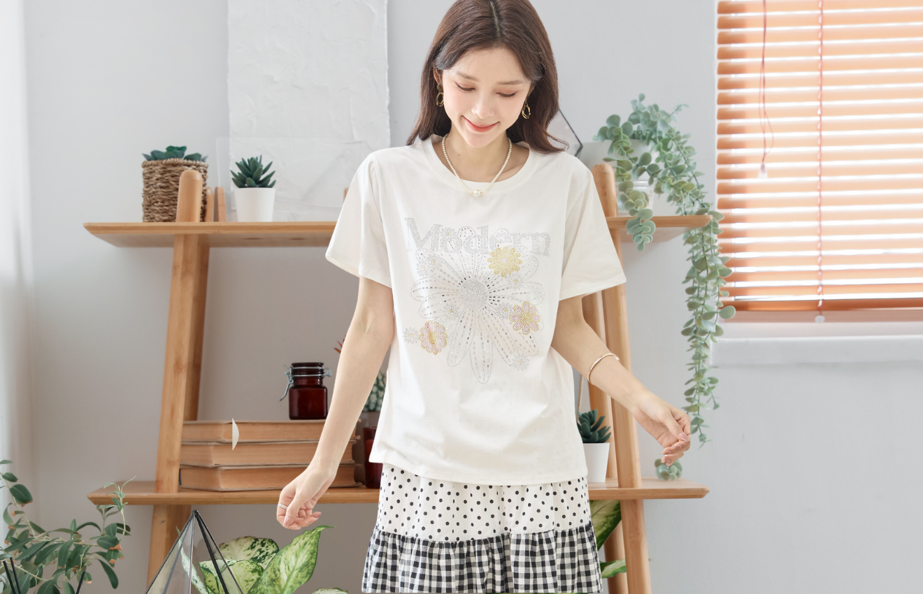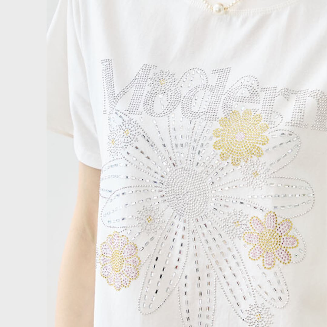 キーワード:#Tシャツ #フラワー #スパンコール #ホワイト #おしゃれ #デイリーユース #カジュアル #個性的