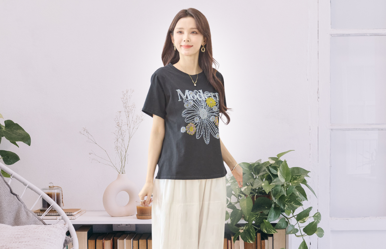 キーワード:#Tシャツ #フラワー #スパンコール #ブラック #おしゃれ #デイリーユース #カジュアル #個性的