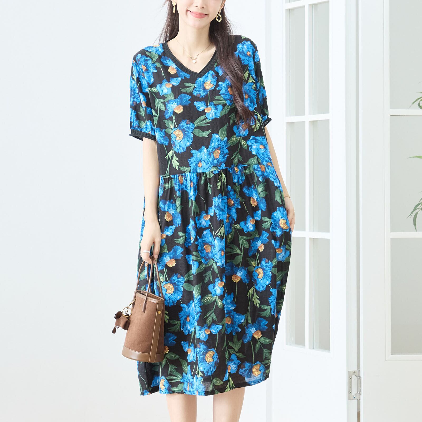 ■商品名・・花柄プリントVネックコットン半袖ワンピース