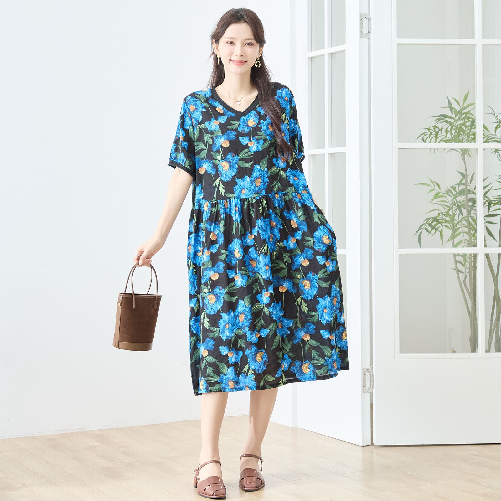 キーワード:#ワンピース #花柄 #ブラック #エレガント #デイリーユース #リラックス #コットン #おしゃれ