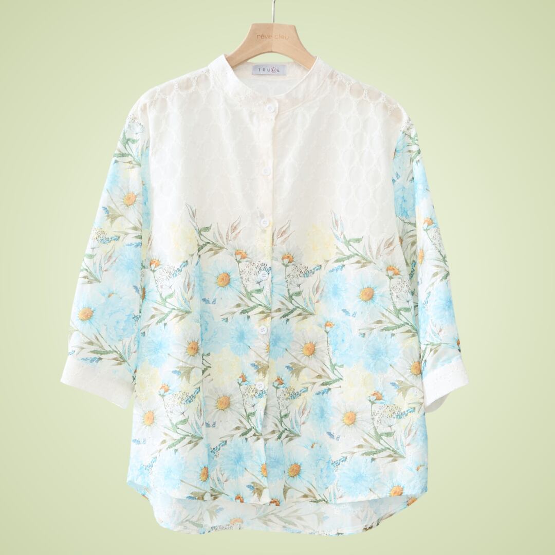 トレンドを先取りする、フラワーレース切替ブラウスがあなたのワードローブに華を添えます。