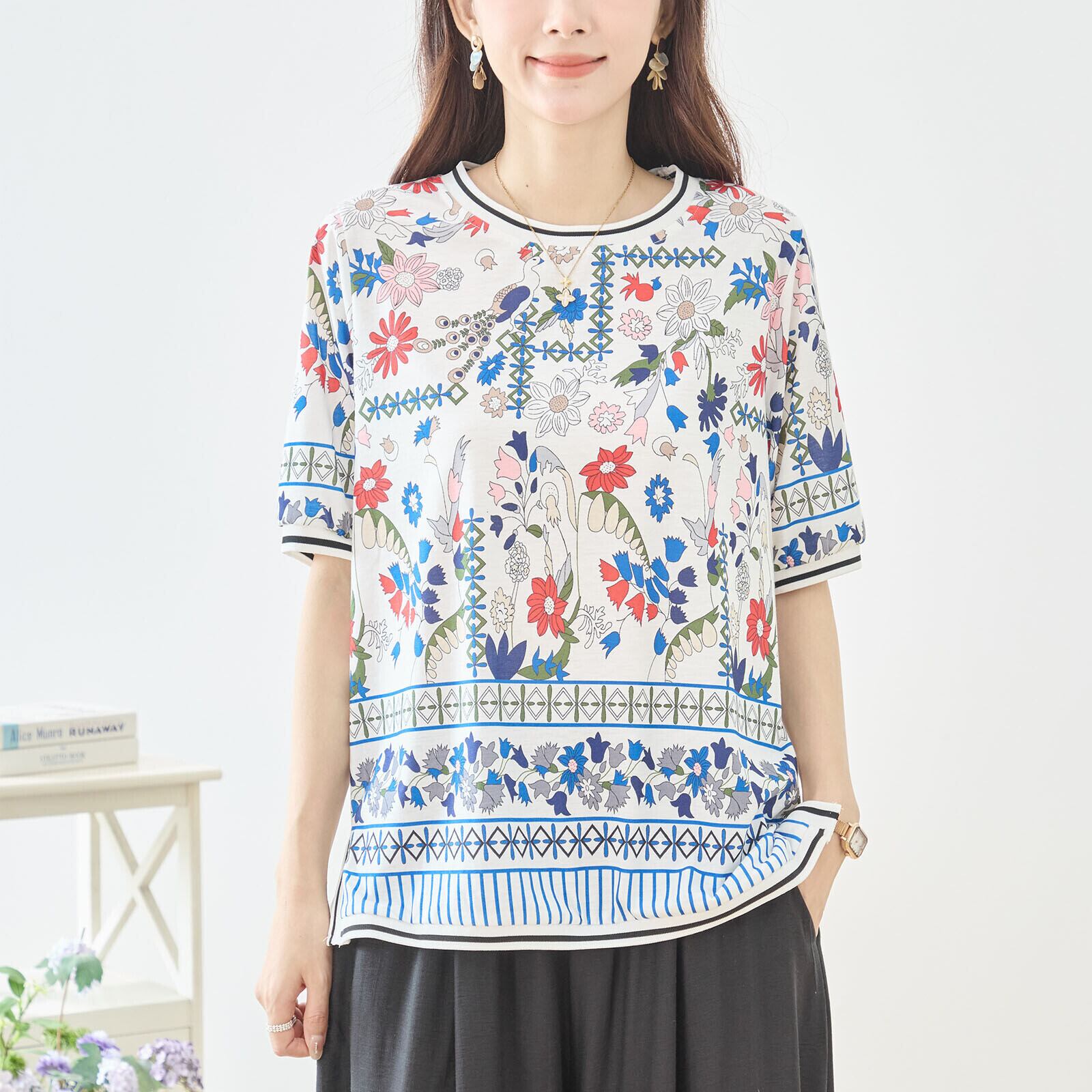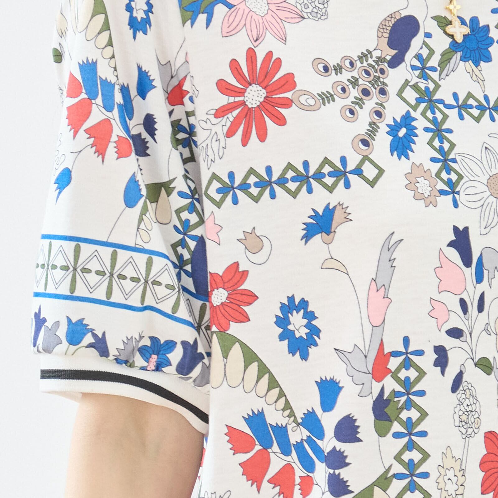 キーワード:#Tシャツ #ボタニカル #ホワイト #鮮やか #民族モチーフ #カジュアル #コーディネート #春夏